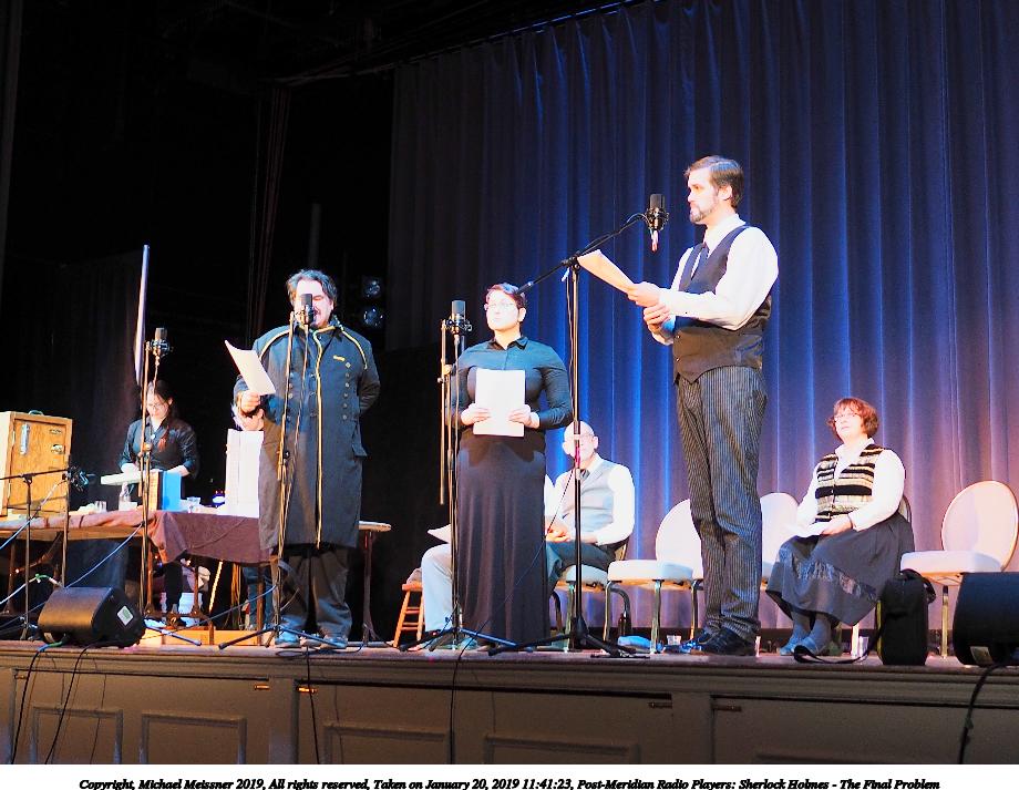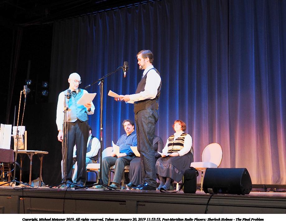 Picture #33: Post-Meridian Radio Players: Sherlock Holmes - The Final Problem #4 Thumb: 460x345, 50,613 bytes (50K) Small: 920x713, 125,827 bytes (123K), (html file) Large: 4600x3450, 2,761,292 bytes (2.6M), (html file) Copyright, Michael Meissner 2019, All rights reserved Olympus E-M1-I camera with Panasonic-Leica 15mm lens f/1.8, ISO 200, 1/80 sec, 15.0mm, auto mode, vivid color, SHQ, spot metering, bias -0.3, digital zoom x2, IS Auto, noise reduction auto, noise filter low 35mm equivalent focal length 60.0mm, digital zoom x2 Programs used: crop, raw therapee Taken by Michael Meissner on January 20, 2019 12:01:36 Last modified on April 11, 2019 at 00:34 |