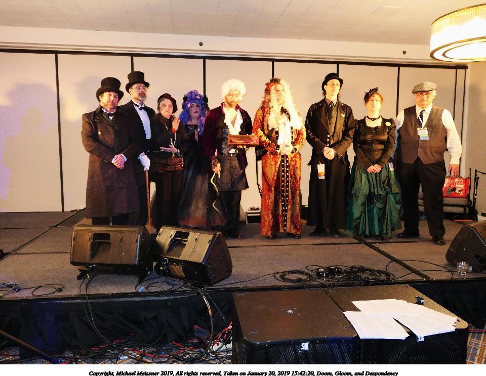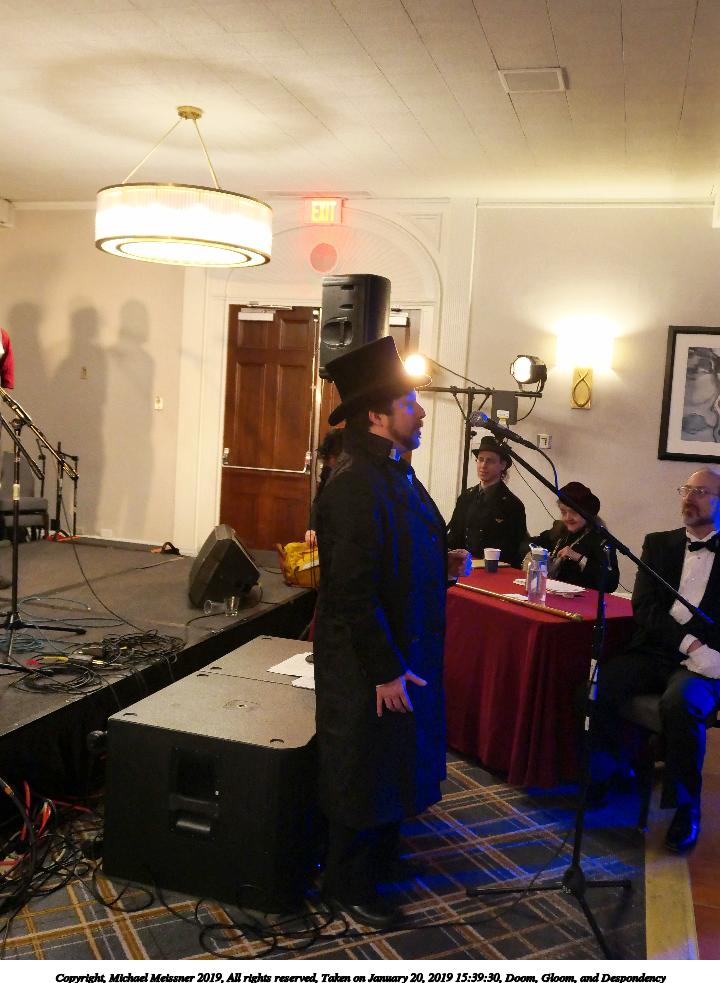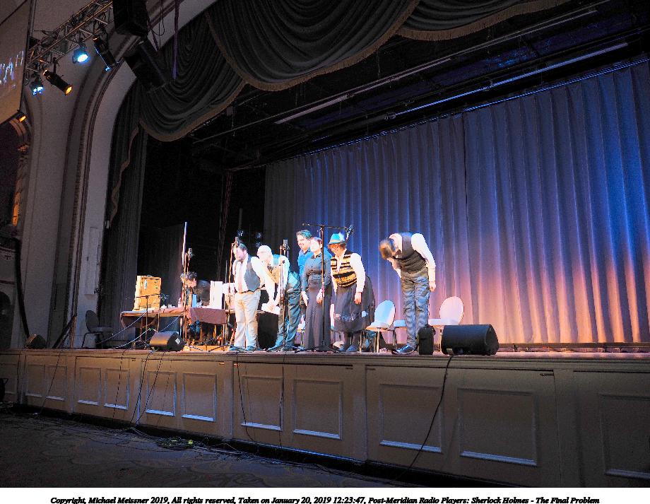 Picture #30: Post-Meridian Radio Players: Sherlock Holmes - The Final Problem Thumb: 460x345, 50,427 bytes (50K) Small: 920x713, 125,141 bytes (123K), (html file) Large: 4600x3450, 2,765,048 bytes (2.6M), (html file) Copyright, Michael Meissner 2019, All rights reserved Olympus E-M1-I camera with Panasonic-Leica 15mm lens f/1.7, ISO 250, 1/60 sec, 15.0mm, auto mode, vivid color, SHQ, matrix metering, bias -1.0, digital zoom x2, IS Auto, noise reduction auto, noise filter low 35mm equivalent focal length 60.0mm, digital zoom x2 Programs used: crop, raw therapee Taken by Michael Meissner on January 20, 2019 11:41:23 Last modified on April 11, 2019 at 00:33 |