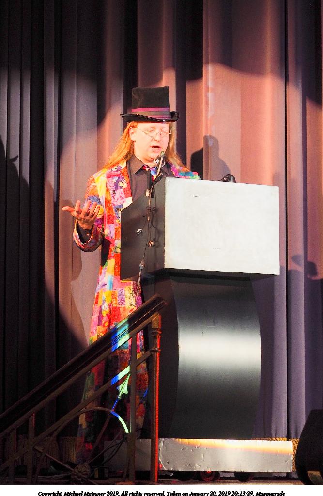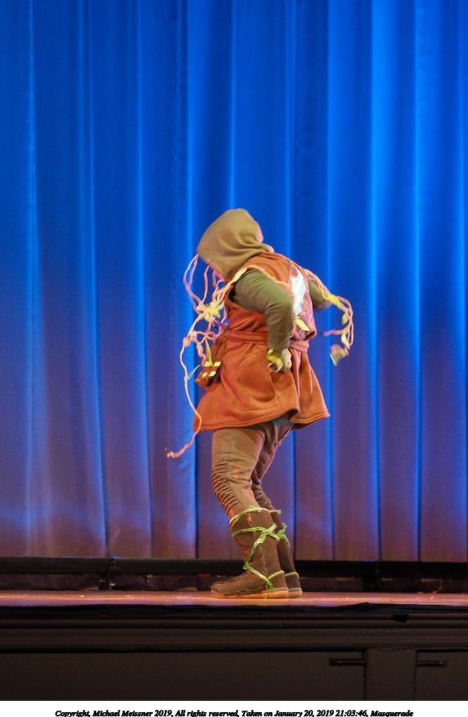 Picture #55: Masquerade #45 Thumb: 333x500, 50,232 bytes (50K) Small: 667x1023, 101,106 bytes (99K), (html file) Large: 2000x3000, 4,460,549 bytes (4.3M), (html file) Copyright, Michael Meissner 2019, All rights reserved Olympus E-M1-I camera with Olympus-m43 12-40mm f/2.8 lens f/2.8, ISO 640, 1/80 sec, 38.0mm, auto mode, vivid color, SHQ, spot metering, bias -0.3, IS Auto, noise reduction auto, noise filter low 35mm equivalent focal length 76.0mm Programs used: crop, gimp, rotate Taken by Michael Meissner on January 20, 2019 21:01:24 Last modified on April 12, 2019 at 09:50 |
