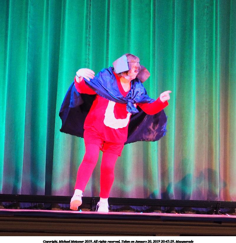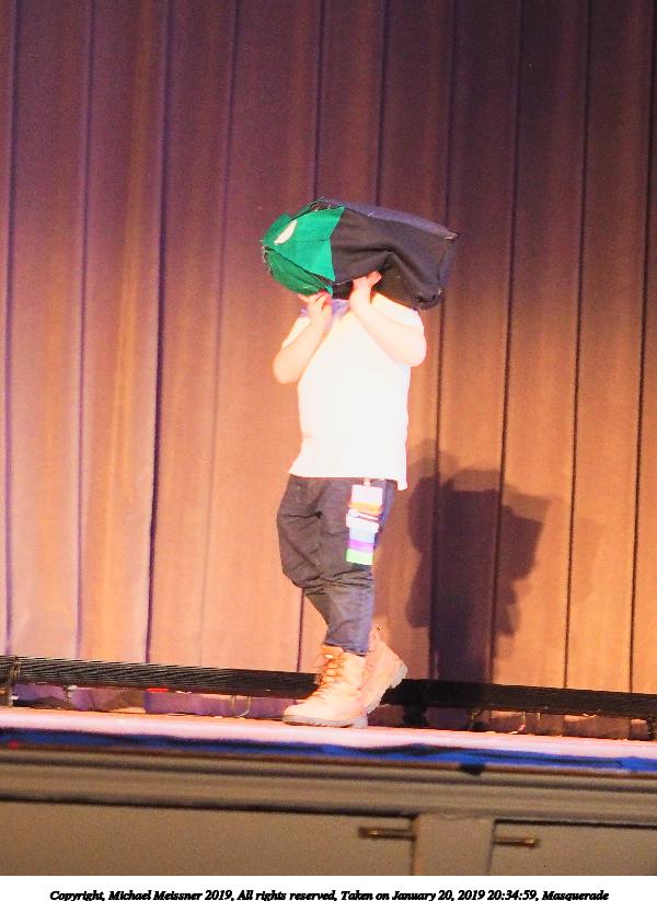 Picture #95: Masquerade #85 Thumb: 300x450, 49,479 bytes (49K) Small: 600x923, 116,174 bytes (114K), (html file) Large: 2400x3600, 6,284,319 bytes (6.0M), (html file) Copyright, Michael Meissner 2019, All rights reserved Olympus E-M1-I camera with Olympus-m43 12-40mm f/2.8 lens f/2.8, ISO 320, flash, 1/60 sec, 12.0mm, auto mode, vivid color, SHQ, matrix metering, IS Auto, noise reduction auto, noise filter low 35mm equivalent focal length 24.0mm Programs used: crop, gimp, rotate Taken by Michael Meissner on January 20, 2019 21:39:54 Last modified on April 12, 2019 at 11:17 |