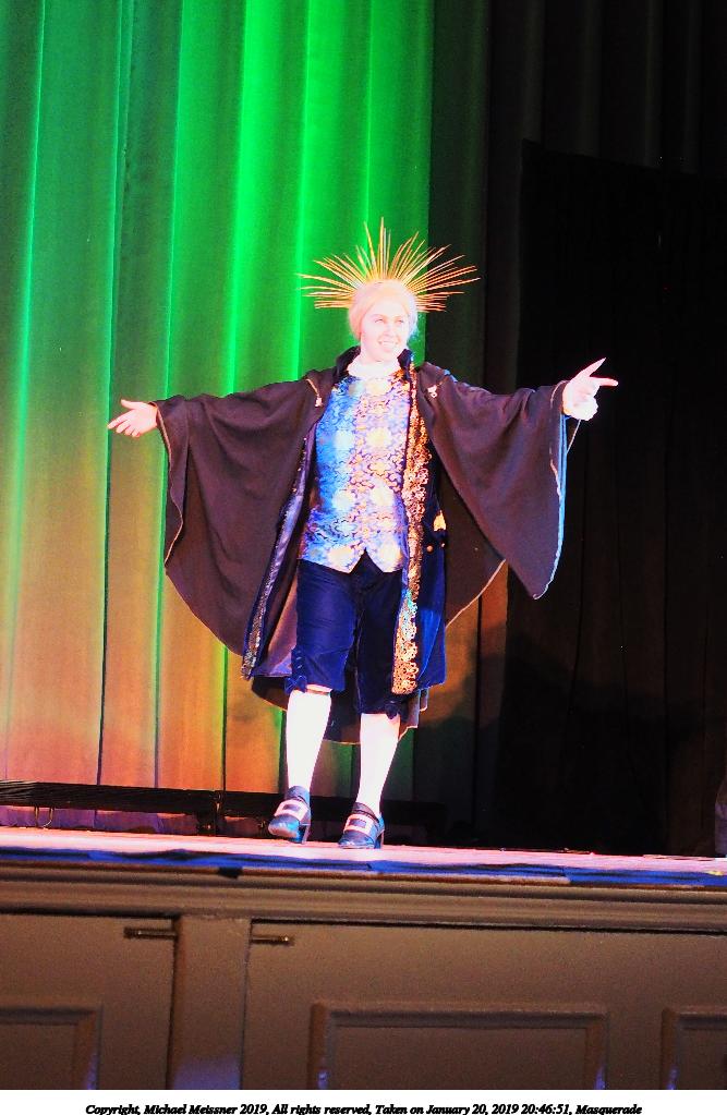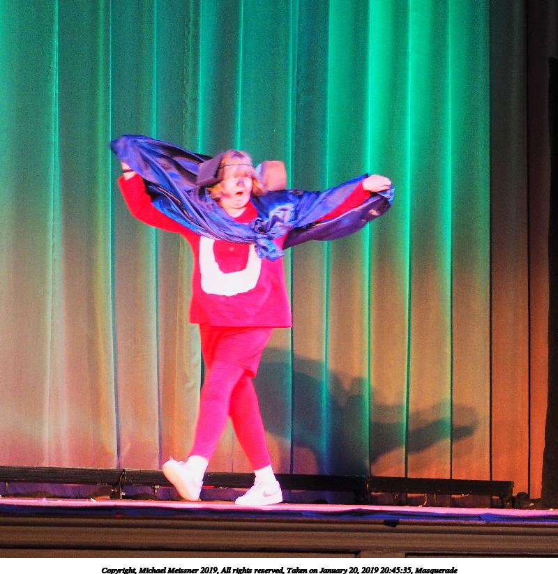 Picture #71: Masquerade #61 Thumb: 333x500, 46,088 bytes (46K) Small: 667x1023, 84,556 bytes (83K), (html file) Large: 2000x3000, 3,811,723 bytes (3.6M), (html file) Copyright, Michael Meissner 2019, All rights reserved Olympus E-M1-I camera with Olympus-m43 12-40mm f/2.8 lens f/2.8, ISO 200, 1/100 sec, 40.0mm, auto mode, vivid color, SHQ, spot metering, bias -0.3, IS Auto, noise reduction auto, noise filter low 35mm equivalent focal length 80.0mm Programs used: crop, gimp, rotate Taken by Michael Meissner on January 20, 2019 21:09:09 Last modified on April 12, 2019 at 10:41 |