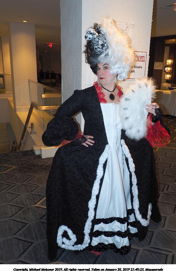 Picture #73: Masquerade #63 Thumb: 333x500, 50,203 bytes (50K) Small: 667x1023, 103,059 bytes (101K), (html file) Large: 2000x3000, 4,564,698 bytes (4.4M), (html file) Copyright, Michael Meissner 2019, All rights reserved Olympus E-M1-I camera with Olympus-m43 12-40mm f/2.8 lens f/2.8, ISO 500, 1/80 sec, 40.0mm, auto mode, vivid color, SHQ, spot metering, bias -0.3, IS Auto, noise reduction auto, noise filter low 35mm equivalent focal length 80.0mm Programs used: crop, gimp, rotate Taken by Michael Meissner on January 20, 2019 21:10:50 Last modified on April 12, 2019 at 10:45 |