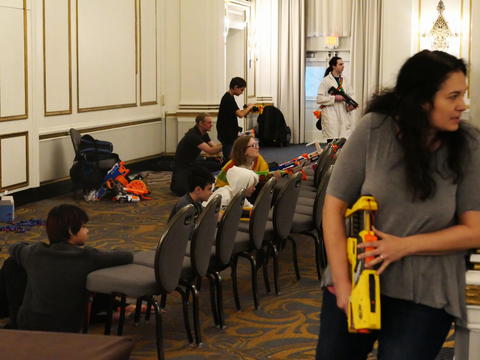 Picture #24: Nerf gun battles #3 Thumb: 450x300, 60,752 bytes (60K) Small: 900x623, 113,625 bytes (111K), (html file) Large: 3600x2400, 4,851,408 bytes (4.6M), (html file) Copyright, Michael Meissner 2019, All rights reserved Panasonic LX-10 camera f/2.8, ISO 2000, 1/125 sec, 25.1mm, shutter priority, auto wb (3000), matrix metering, bias -0.3, image stabilization 35mm equivalent focal length 74.0mm Programs used: adjusttime, crop, gimp, raw therapee Taken by Michael Meissner on January 20, 2019 11:08:25 Last modified on April 10, 2019 at 23:26 |