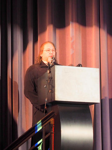 Picture #2: Dramatic Readings from the Ig Nobel Prizes #2 Thumb: 480x360, 65,323 bytes (64K) Small: 960x743, 133,336 bytes (131K), (html file) Large: 4800x3600, 2,930,439 bytes (2.8M), (html file) Copyright, Michael Meissner 2019, All rights reserved Panasonic LX-10 camera f/2.8, ISO 1600, 1/100 sec, 26.4mm, auto mode, auto wb (3500), matrix metering, bias -0.3, image stabilization 35mm equivalent focal length 128.0mm, i.zoom Programs used: adjusttime, crop, raw therapee Taken by Michael Meissner on January 18, 2019 22:15:23 Last modified on April 10, 2019 at 23:09 |