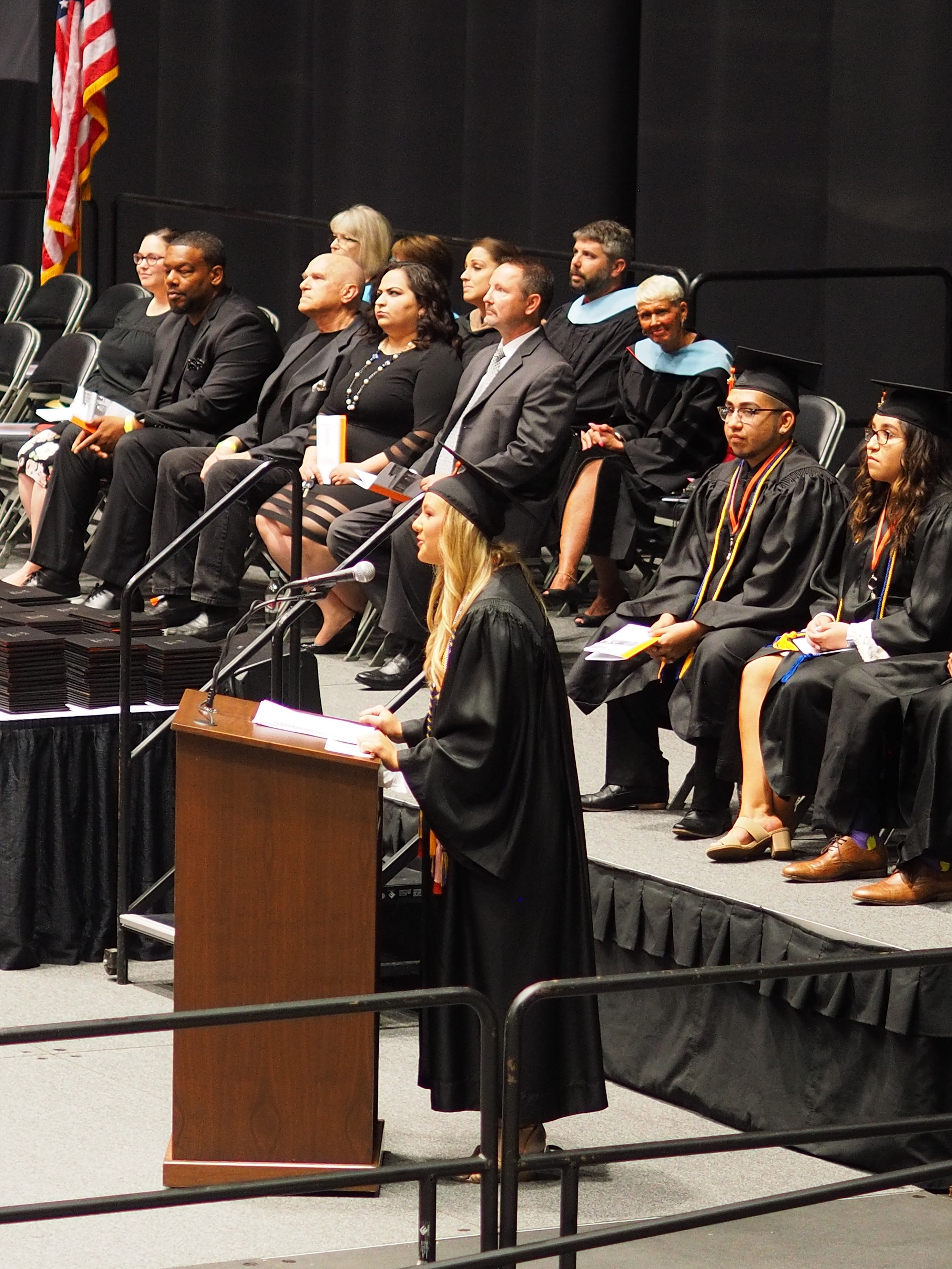 Picture #7: Speaker at Chris's graduation #2 Small: 690x943, 138,471 bytes (136K), (html file) Large: 3450x4600, 2,859,187 bytes (2.7M), (html file) Copyright, Michael Meissner 2019, All rights reserved Olympus E-M1-I camera with Olympus-m43 45mm f/1.8 lens f/1.8, ISO 800, 1/100 sec, 45.0mm, auto mode, vivid color, SHQ, matrix metering, bias -0.7, digital zoom x2, IS Auto, noise filter low, anti-shock 35mm equivalent focal length 180.0mm, digital zoom x2 Programs used: crop, raw therapee, rotate left Taken by Michael Meissner on May 25, 2019 11:17:41 Last modified on December 25, 2019 at 19:12 |