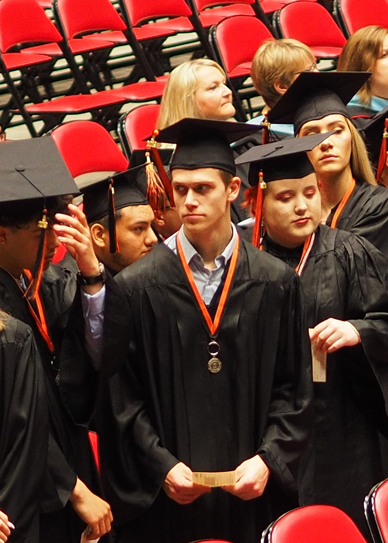 Picture #15: The graduates #4 Small: 920x713, 180,487 bytes (177K), (html file) Large: 4600x3450, 3,372,755 bytes (3.2M), (html file) Copyright, Michael Meissner 2019, All rights reserved Olympus E-M1-I camera with Olympus-m43 45mm f/1.8 lens f/1.8, ISO 500, 1/100 sec, 45.0mm, auto mode, vivid color, SHQ, matrix metering, bias -0.3, digital zoom x2, IS Auto, noise filter low, anti-shock 35mm equivalent focal length 180.0mm, digital zoom x2 Programs used: crop, raw therapee Taken by Michael Meissner on May 25, 2019 11:37:31 Last modified on December 25, 2019 at 19:15 |