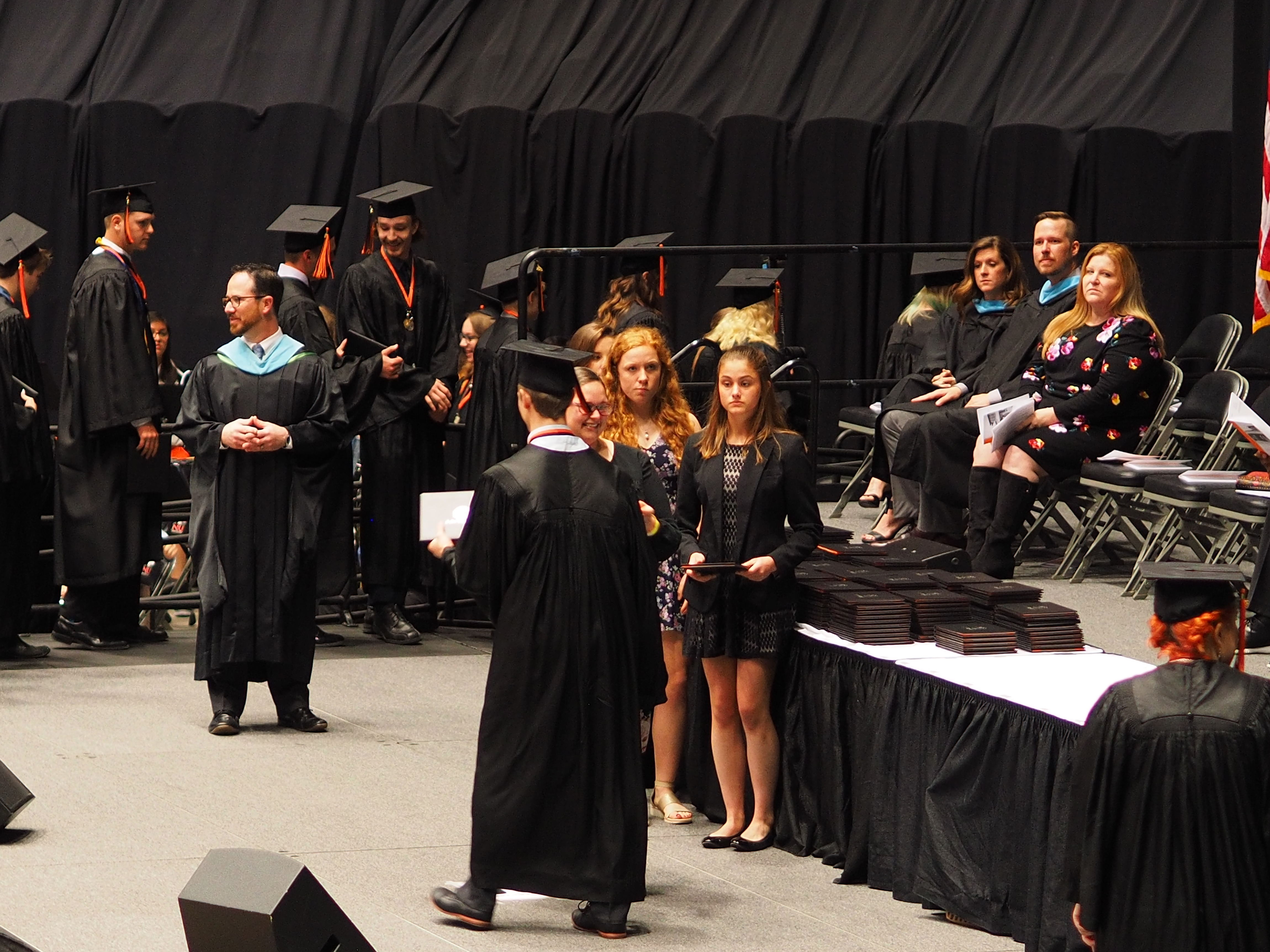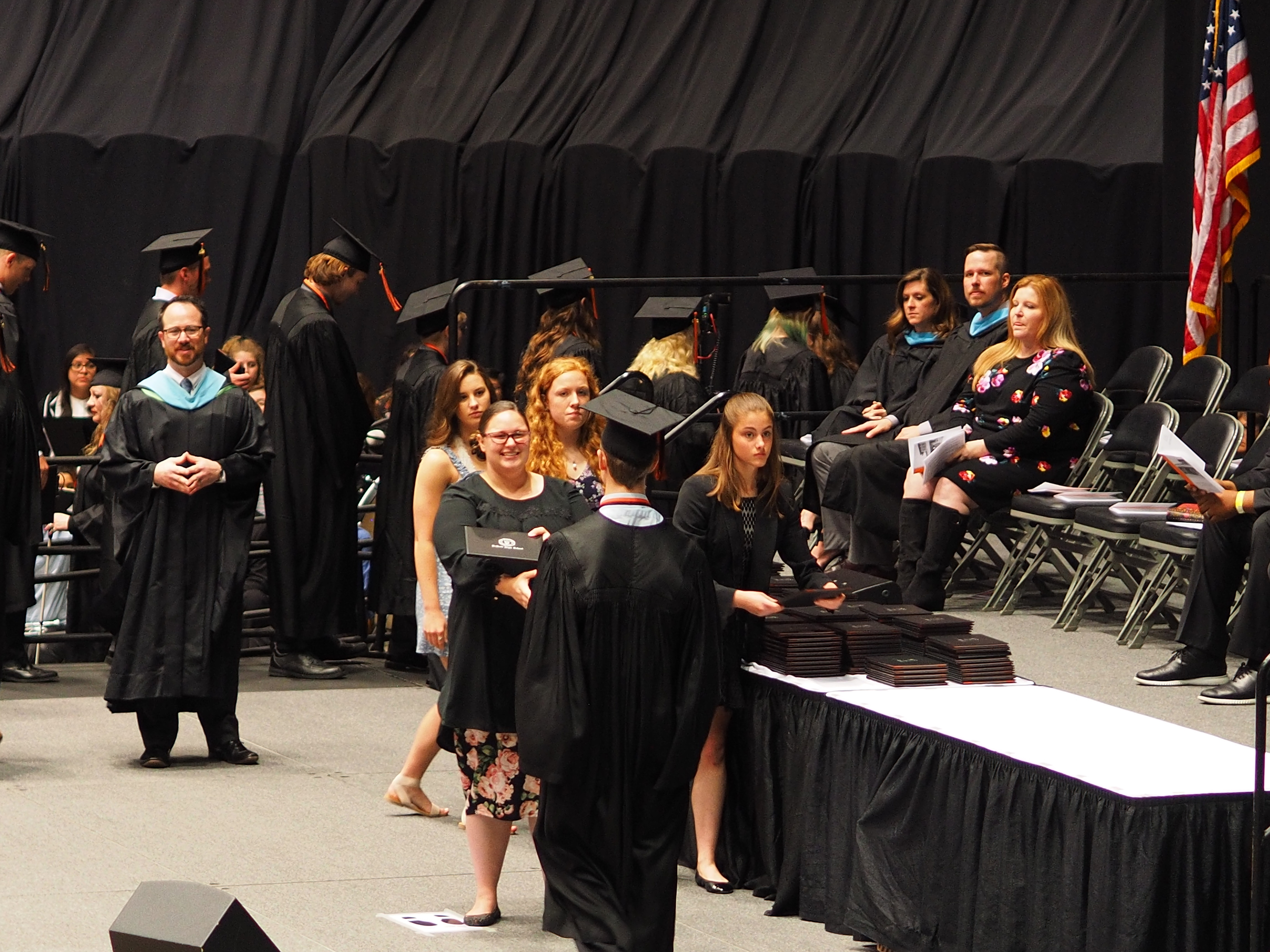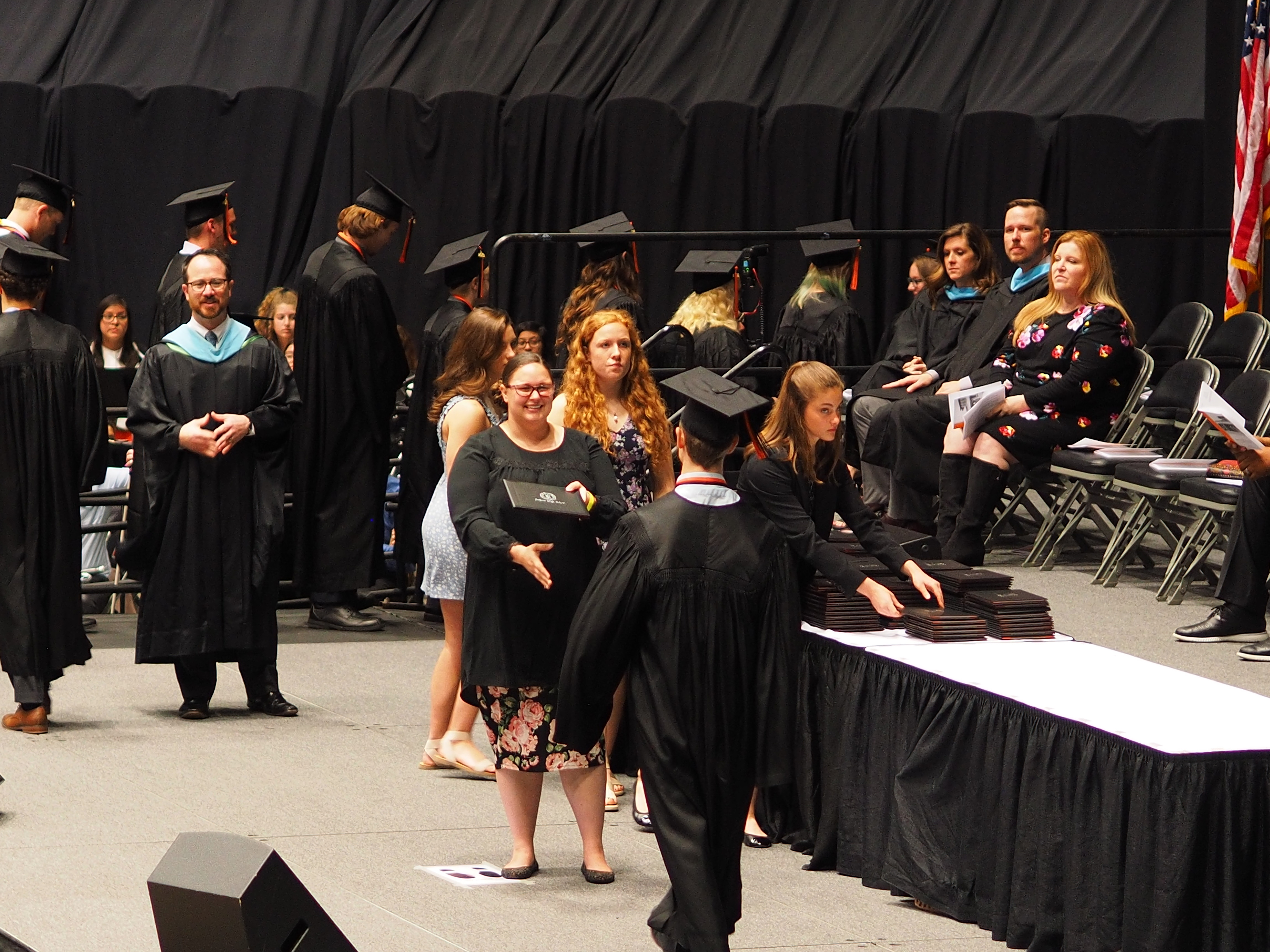 Picture #9: Speakers at Chris's graduation Small: 920x713, 152,660 bytes (150K), (html file) Large: 4600x3450, 2,996,055 bytes (2.9M), (html file) Copyright, Michael Meissner 2019, All rights reserved Olympus E-M1-I camera with Olympus-m43 45mm f/1.8 lens f/1.8, ISO 800, 1/100 sec, 45.0mm, auto mode, vivid color, SHQ, matrix metering, bias -0.7, digital zoom x2, IS Auto, noise filter low, anti-shock 35mm equivalent focal length 180.0mm, digital zoom x2 Programs used: crop, raw therapee Taken by Michael Meissner on May 25, 2019 11:21:13 Last modified on December 25, 2019 at 19:12 |