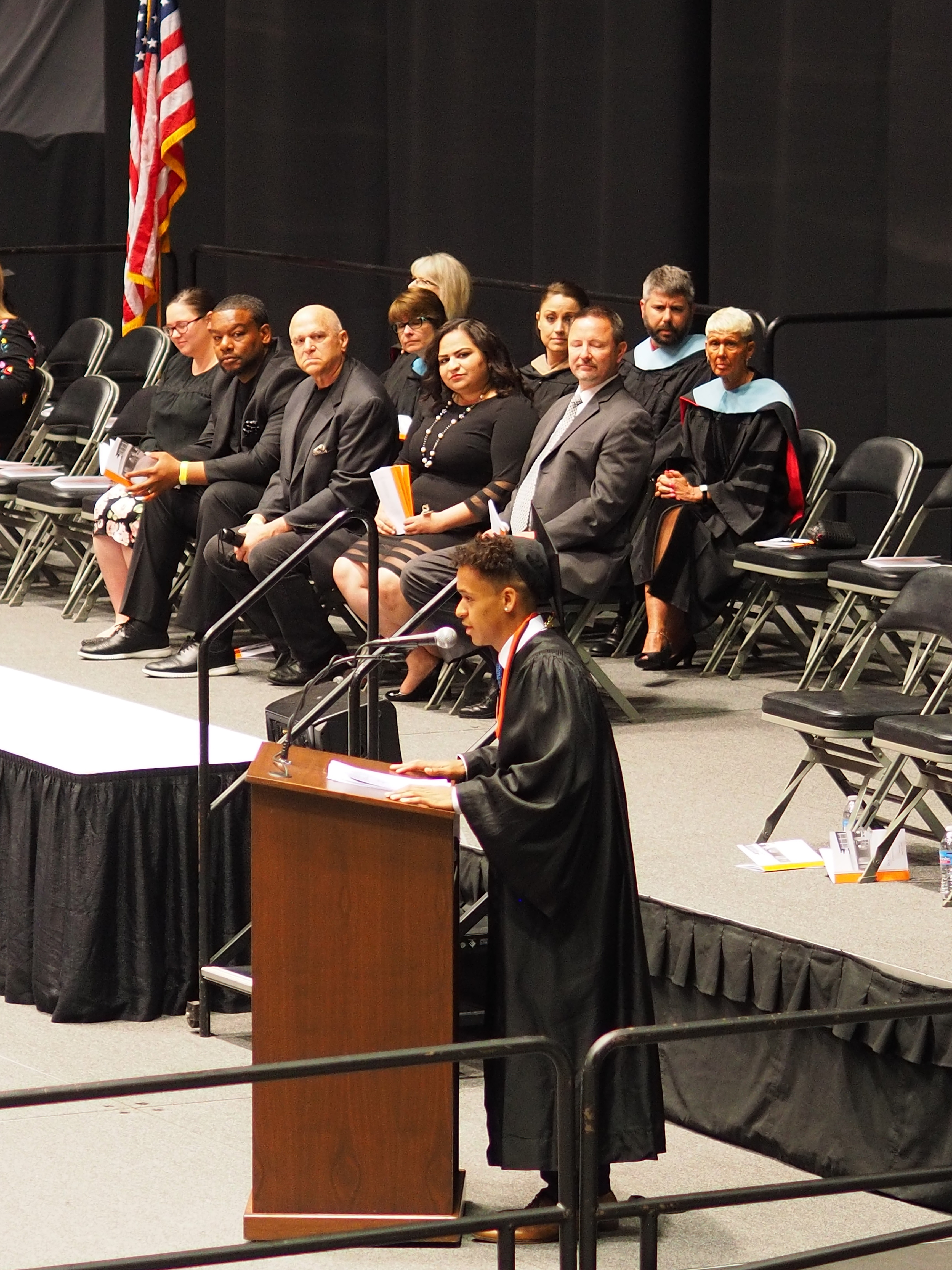 Picture #8: Speaker at Chris's graduation #3 Small: 690x943, 138,136 bytes (135K), (html file) Large: 3450x4600, 2,859,694 bytes (2.7M), (html file) Copyright, Michael Meissner 2019, All rights reserved Olympus E-M1-I camera with Olympus-m43 45mm f/1.8 lens f/1.8, ISO 800, 1/100 sec, 45.0mm, auto mode, vivid color, SHQ, matrix metering, bias -0.7, digital zoom x2, IS Auto, noise filter low, anti-shock 35mm equivalent focal length 180.0mm, digital zoom x2 Programs used: crop, raw therapee, rotate left Taken by Michael Meissner on May 25, 2019 11:19:46 Last modified on December 25, 2019 at 19:12 |