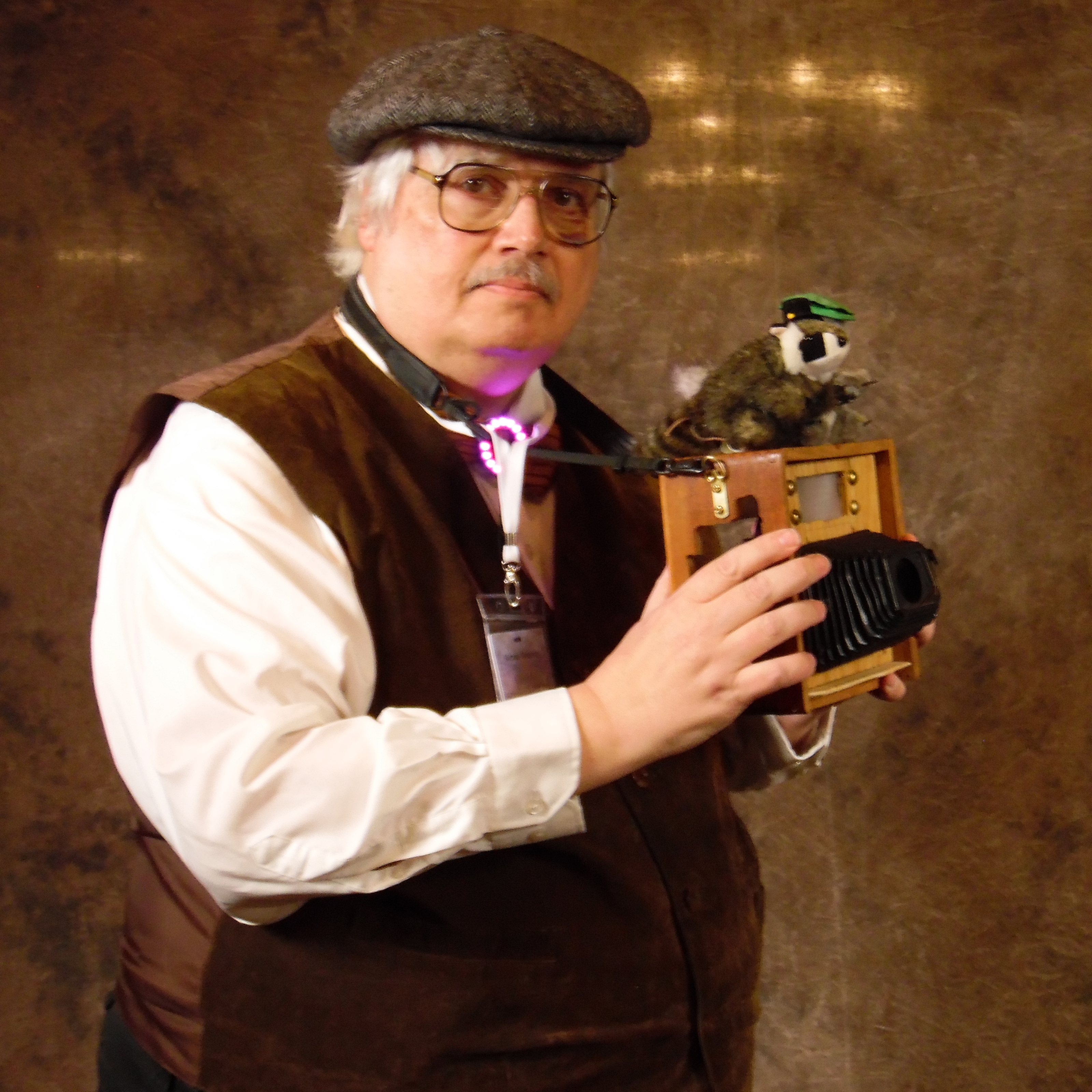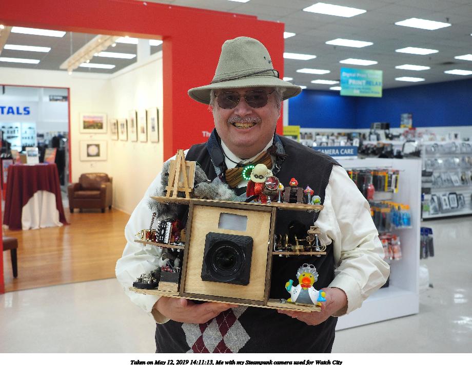 Picture #9: Me with my Steampunk camera used for Watch City Thumb: 300x400, 44,112 bytes (44K) Small: 600x823, 95,089 bytes (93K), (html file) Large: 2400x3200, 5,291,520 bytes (5.0M), (html file) Olympus E-M1-I camera with Olympus-m43 12-40mm f/2.8 lens f/2.8, ISO 320, 1/60 sec, 12.0mm, auto mode, i-enhance color, SHQ, matrix metering, IS Auto 35mm equivalent focal length 24.0mm Programs used: crop, gimp, raw therapee Taken by Michael Meissner on May 12, 2019 14:11:07 Last modified on May 13, 2019 at 23:10 This picture is one of my favorites. |
