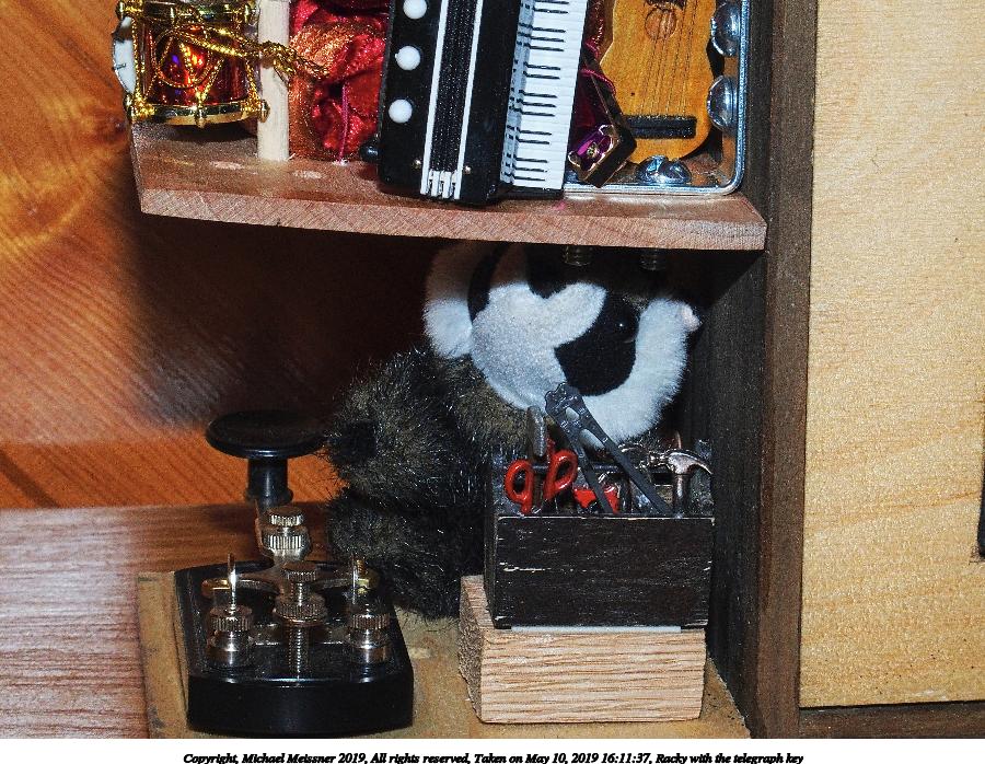 Picture #3: Racky with the telegraph key Thumb: 450x338, 52,500 bytes (52K) Small: 900x698, 180,248 bytes (177K), (html file) Large: 3600x2700, 3,562,355 bytes (3.4M), (html file) Copyright, Michael Meissner 2019, All rights reserved Olympus Stylus-1 camera f/8.0, ISO 400, FL-36R flash (+0.33 flash compensation), 1/60 sec, 26.2mm, aperture priority, vivid color, SHQ, matrix metering, IS Auto, noise reduction auto, noise filter low 35mm equivalent focal length 124.0mm Programs used: crop, raw therapee Taken by Michael Meissner on May 10, 2019 16:11:37 Last modified on May 11, 2019 at 23:27 |