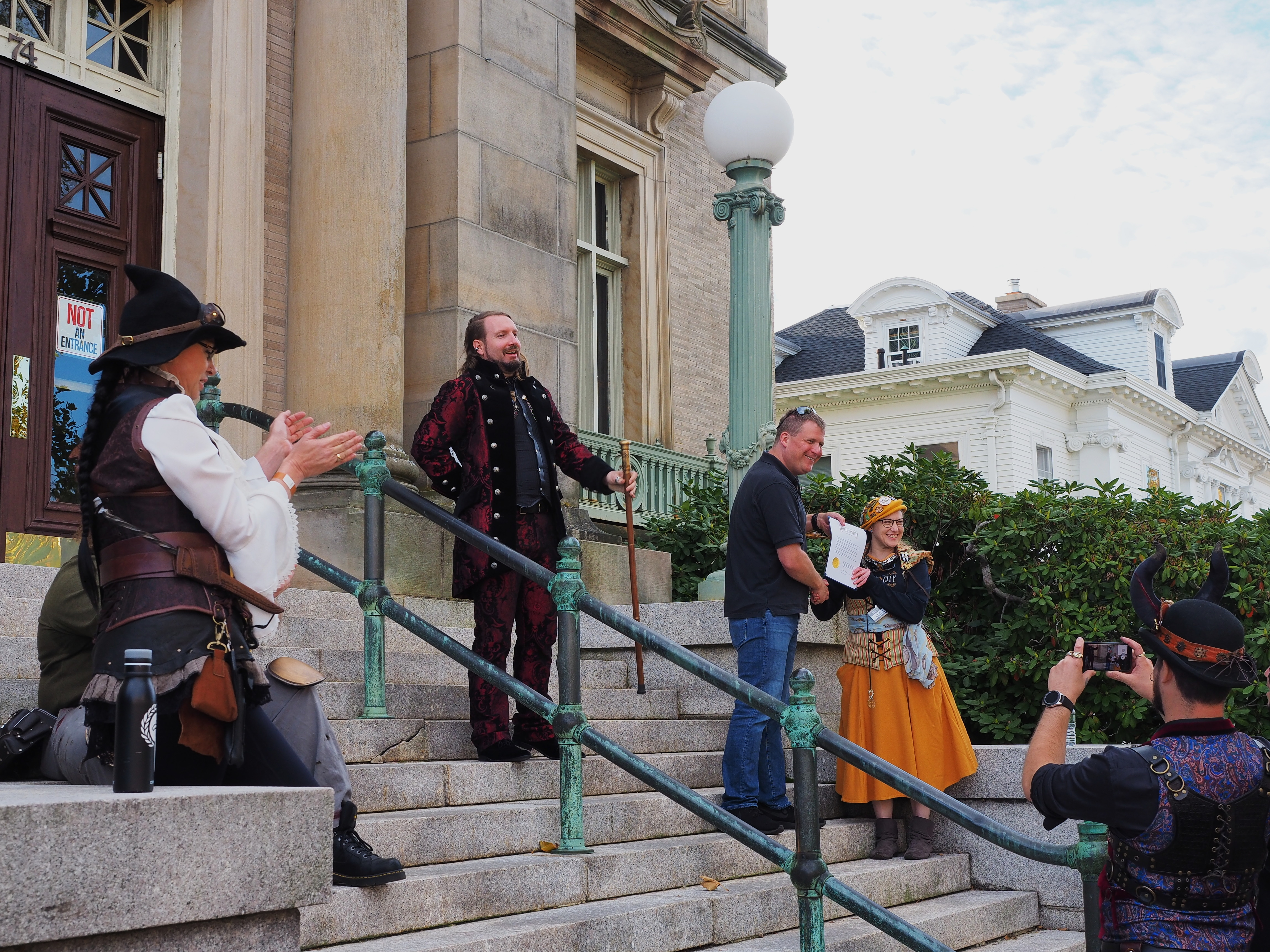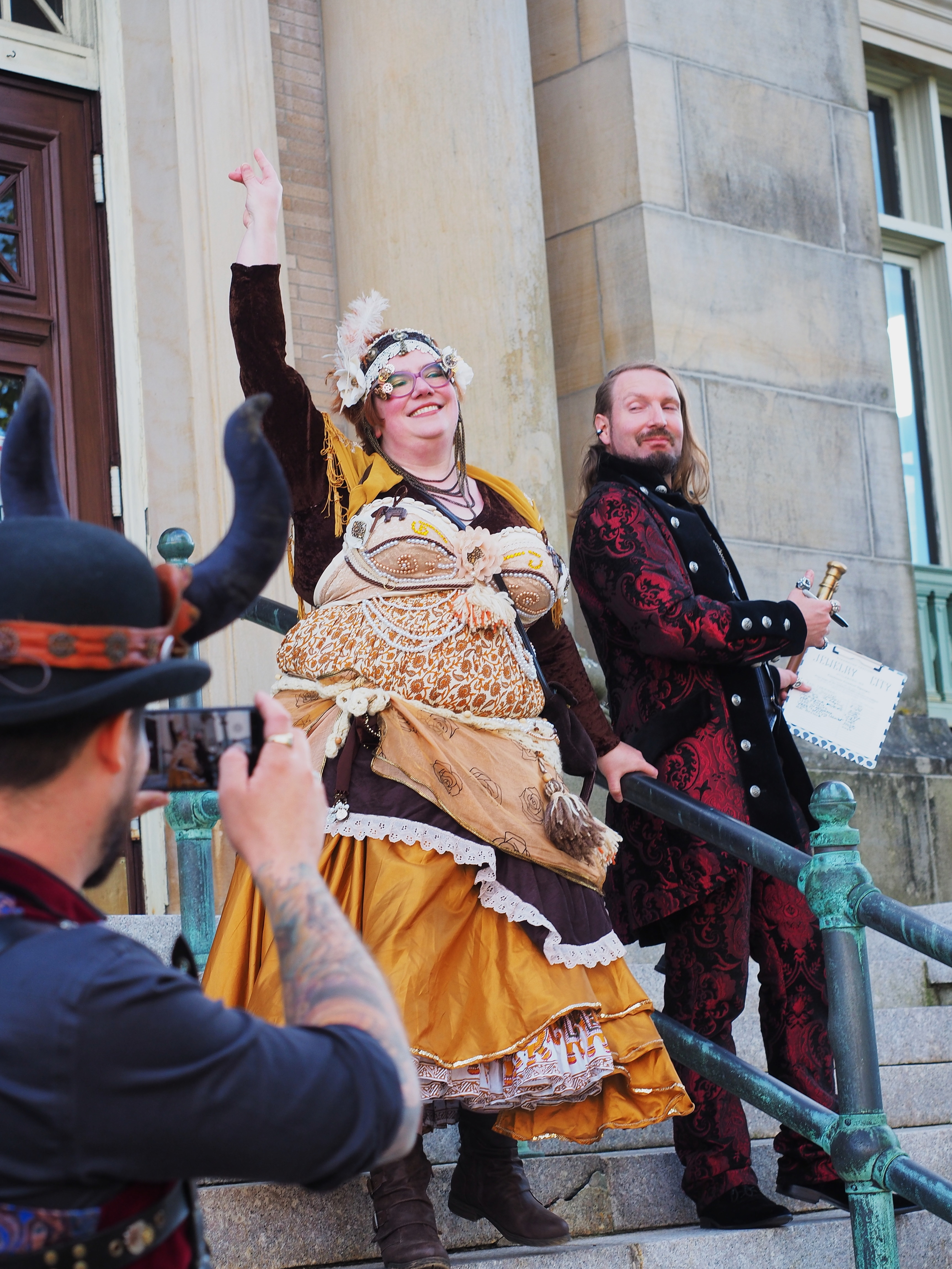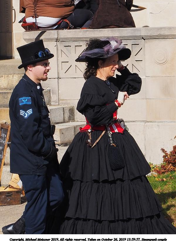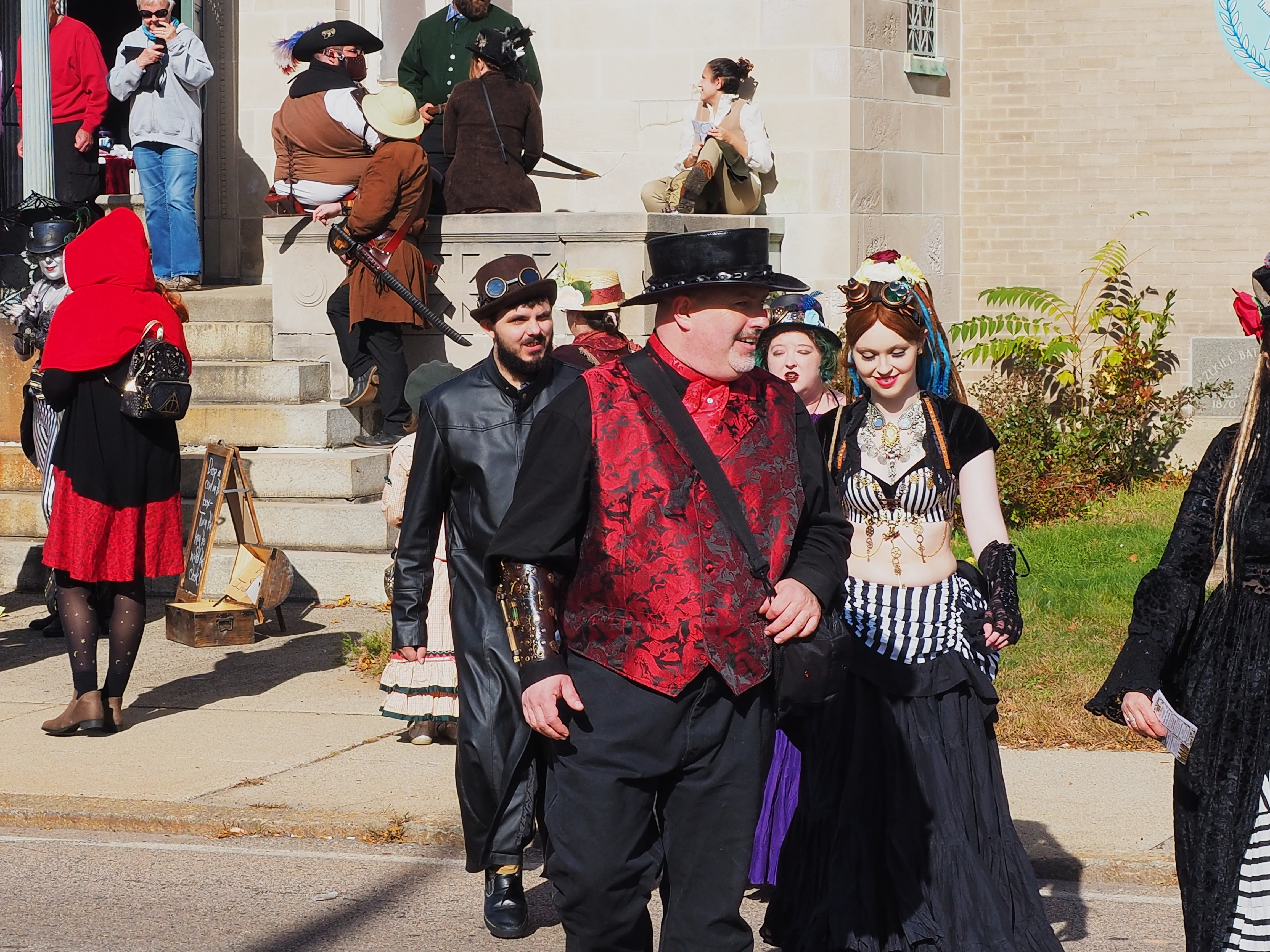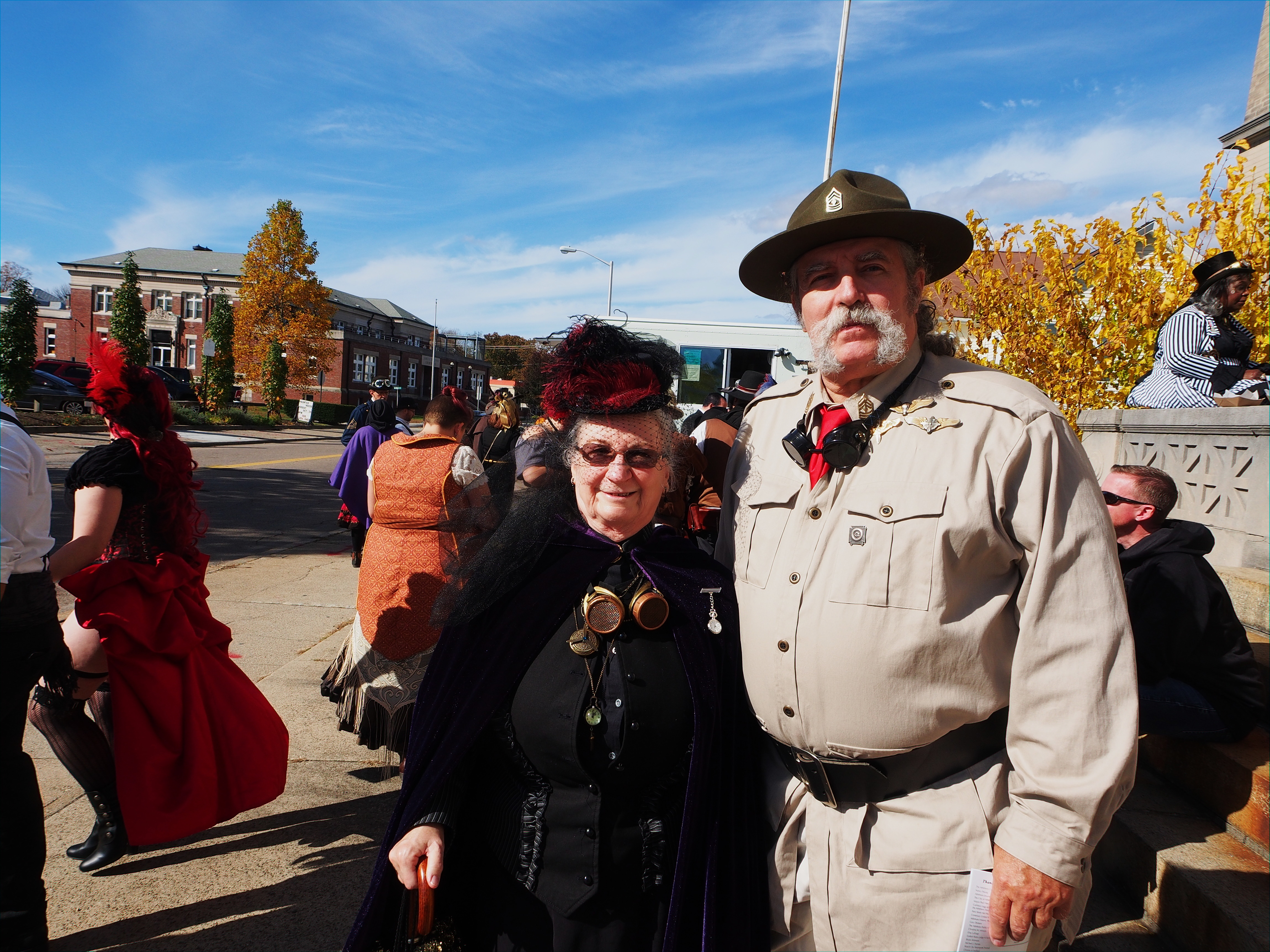 Picture #100: Steampunk couple Small: 600x823, 107,642 bytes (106K), (html file) Large: 2400x3200, 3,240,762 bytes (3.1M), (html file) Copyright, Michael Meissner 2019, All rights reserved Olympus E-M10-II camera with Olympus-m43 12-40mm f/2.8 lens f/8.0, ISO 200, 1/640 sec, 40.0mm, auto mode, vivid color, auto gradation, SHQ, matrix metering, digital zoom x2, noise filter low 35mm equivalent focal length 160.0mm, digital zoom x2 Programs used: crop, gimp, raw therapee Taken by Michael Meissner on October 26, 2019 13:59:57 Last modified on April 02, 2020 at 01:25 |