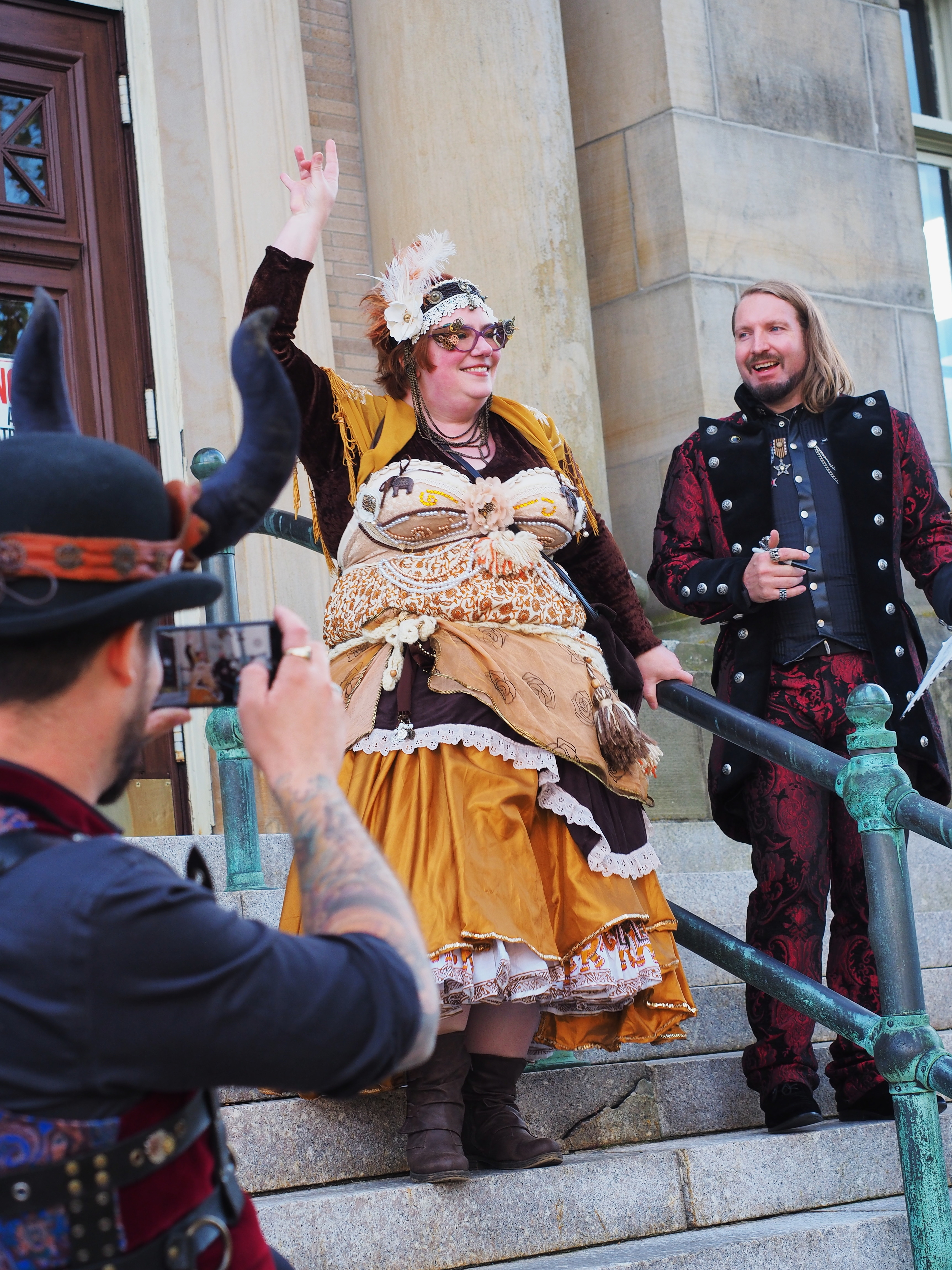 Picture #81: Steampunk photographers Small: 920x713, 244,763 bytes (240K), (html file) Large: 4600x3450, 5,788,450 bytes (5.5M), (html file) Copyright, Michael Meissner 2019, All rights reserved Olympus E-M10-II camera with Olympus-m43 12-40mm f/2.8 lens f/4.0, ISO 200, 1/160 sec, 27.0mm, auto mode, vivid color, auto gradation, SHQ, center weight metering, noise filter low, anti-shock 35mm equivalent focal length 54.0mm Programs used: crop, raw therapee Taken by Michael Meissner on October 26, 2019 15:57:37 Last modified on April 02, 2020 at 01:35 |