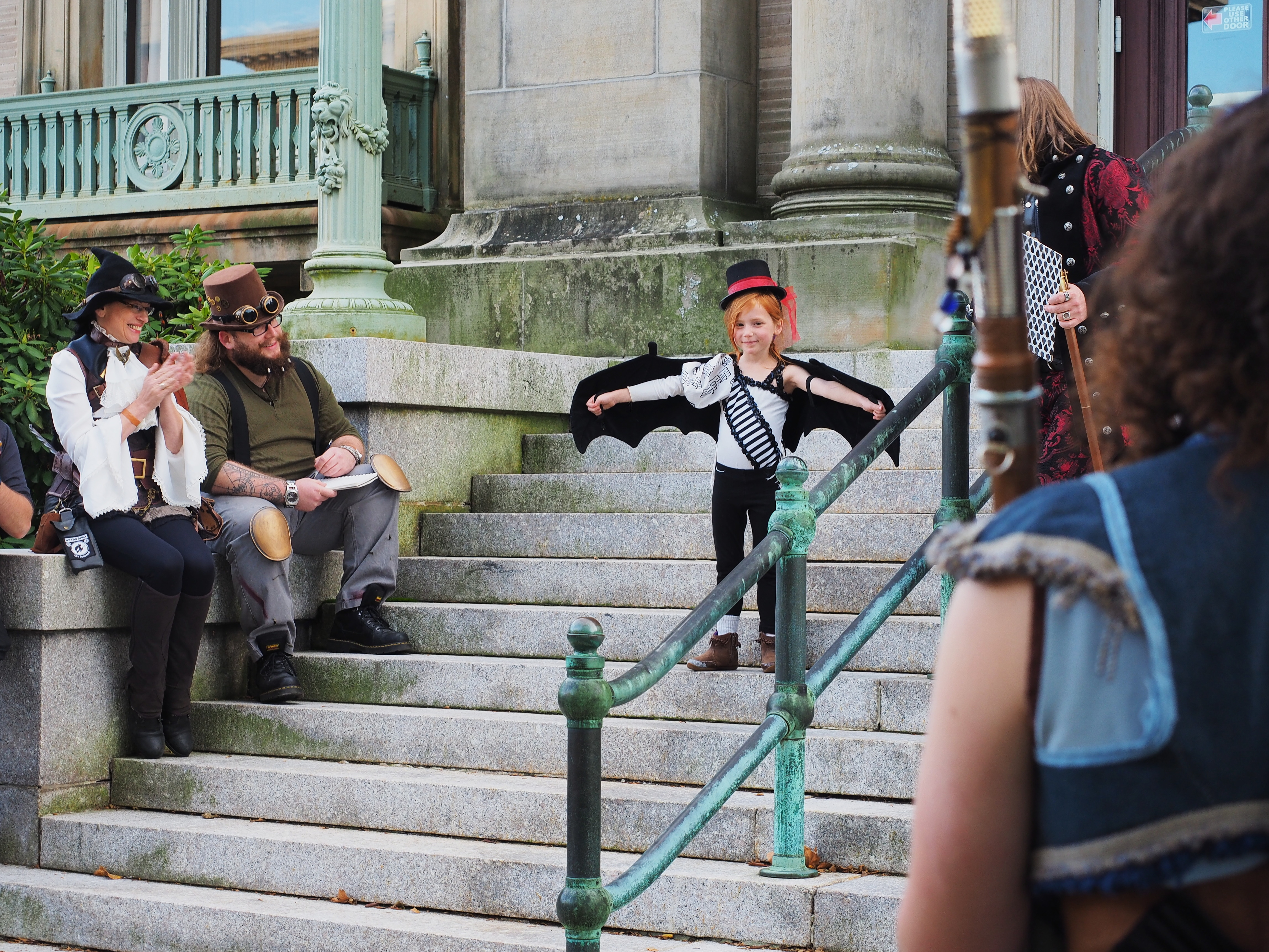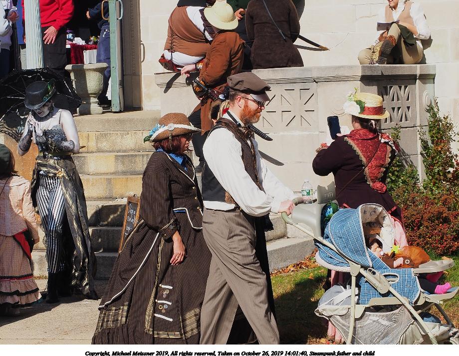 Picture #98: Steampunk father and child Small: 920x713, 197,224 bytes (193K), (html file) Large: 4600x3450, 3,689,843 bytes (3.5M), (html file) Copyright, Michael Meissner 2019, All rights reserved Olympus E-M10-II camera with Olympus-m43 12-40mm f/2.8 lens f/7.1, ISO 200, 1/640 sec, 40.0mm, auto mode, vivid color, auto gradation, SHQ, matrix metering, digital zoom x2, noise filter low 35mm equivalent focal length 160.0mm, digital zoom x2 Programs used: crop, raw therapee Taken by Michael Meissner on October 26, 2019 14:01:40 Last modified on April 02, 2020 at 01:27 |