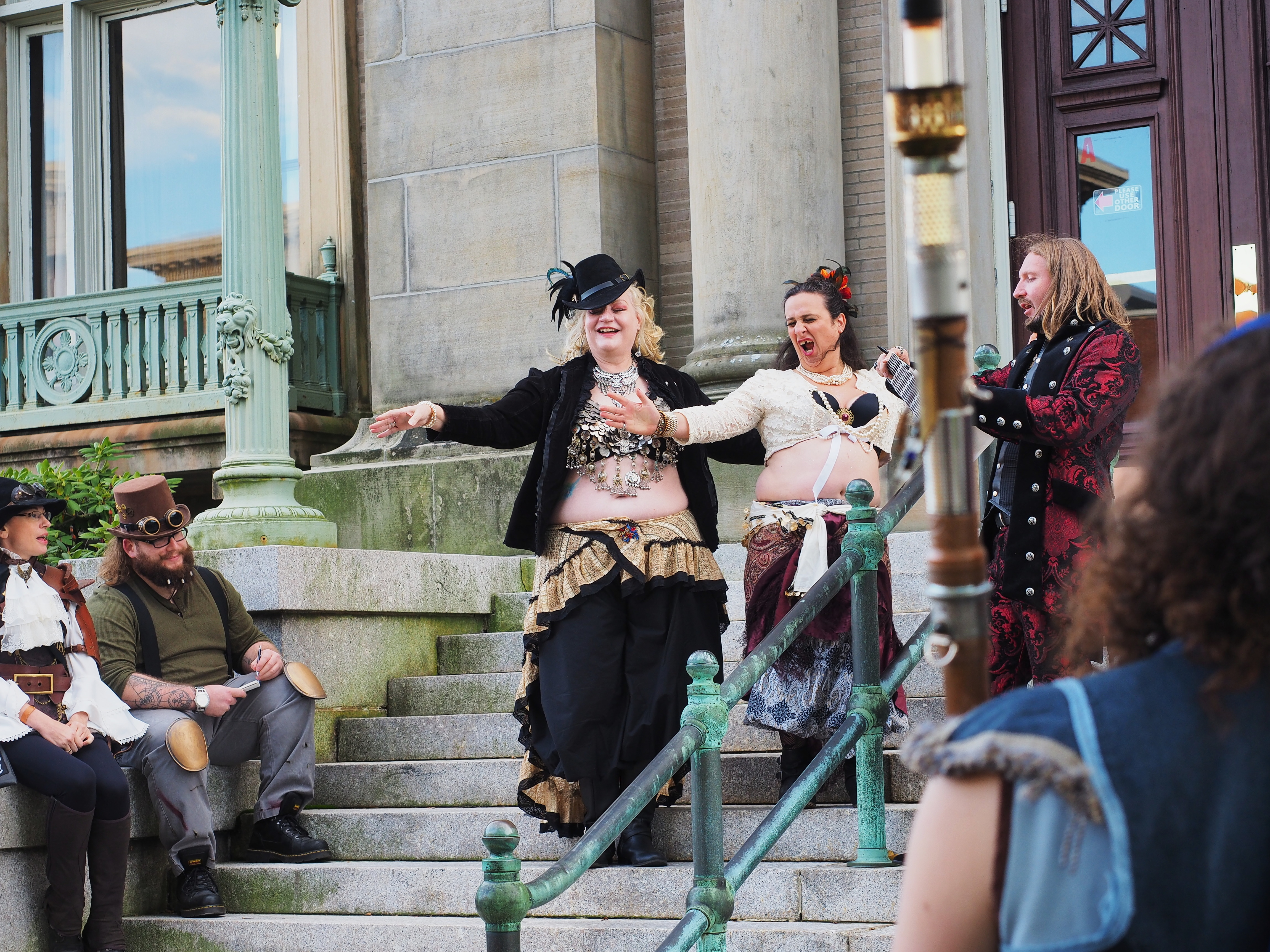 Picture #96: Steampunk busker #2 Small: 920x713, 184,558 bytes (181K), (html file) Large: 4600x3450, 3,449,839 bytes (3.3M), (html file) Copyright, Michael Meissner 2019, All rights reserved Olympus E-M10-II camera with Olympus-m43 12-40mm f/2.8 lens f/8.0, ISO 200, 1/640 sec, 26.0mm, auto mode, vivid color, auto gradation, SHQ, matrix metering, digital zoom x2, noise filter low 35mm equivalent focal length 104.0mm, digital zoom x2 Programs used: crop, raw therapee Taken by Michael Meissner on October 26, 2019 14:03:05 Last modified on April 02, 2020 at 01:27 |