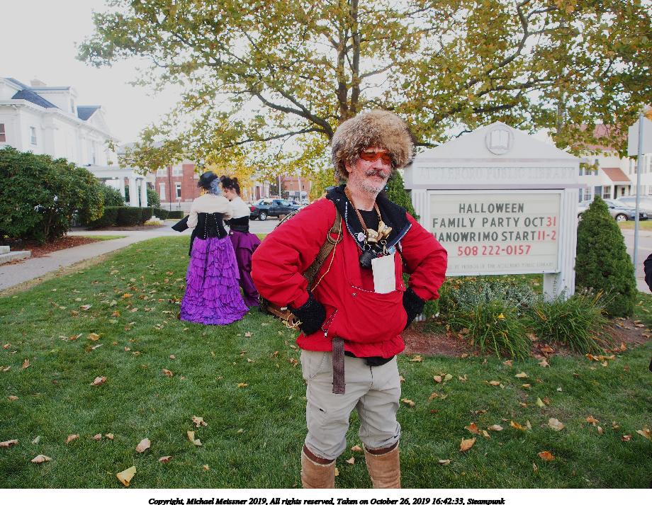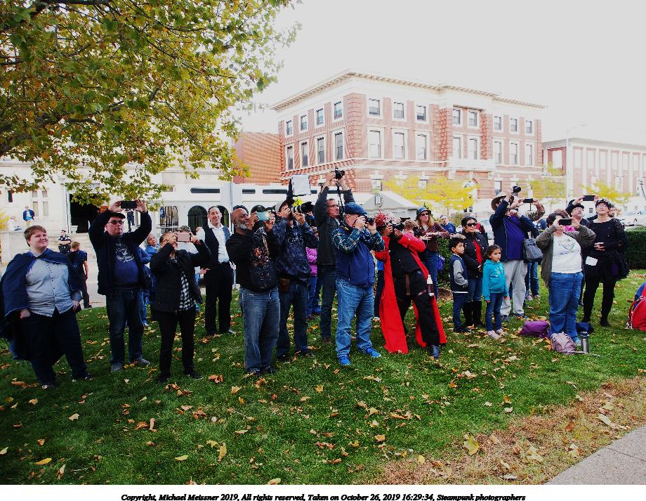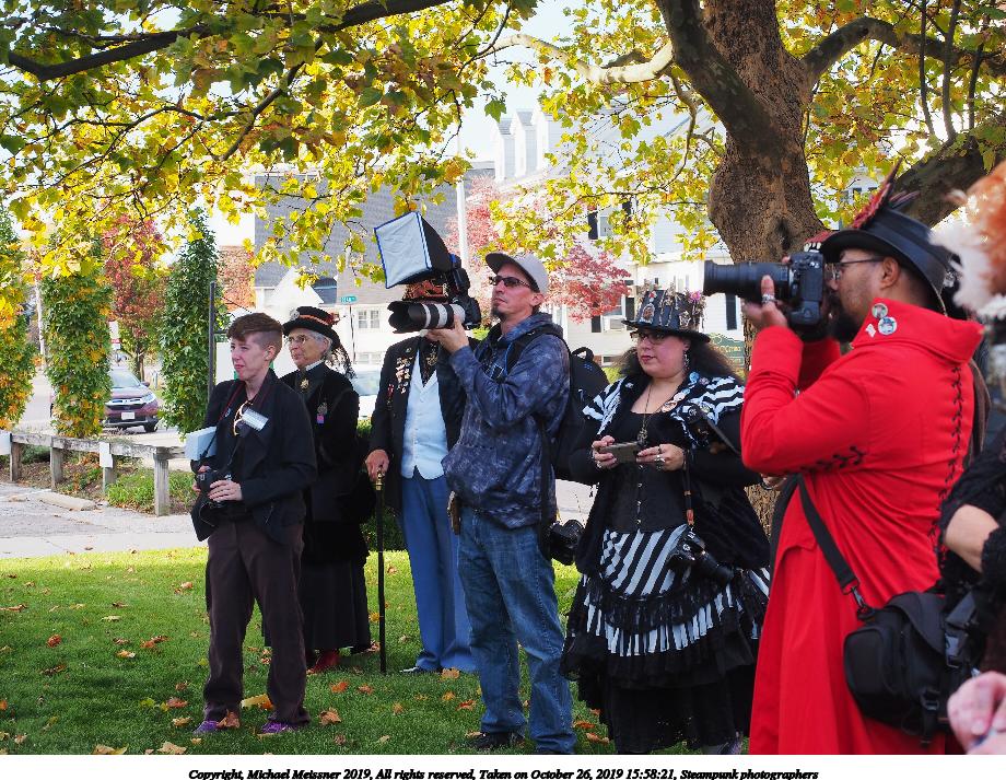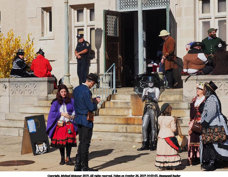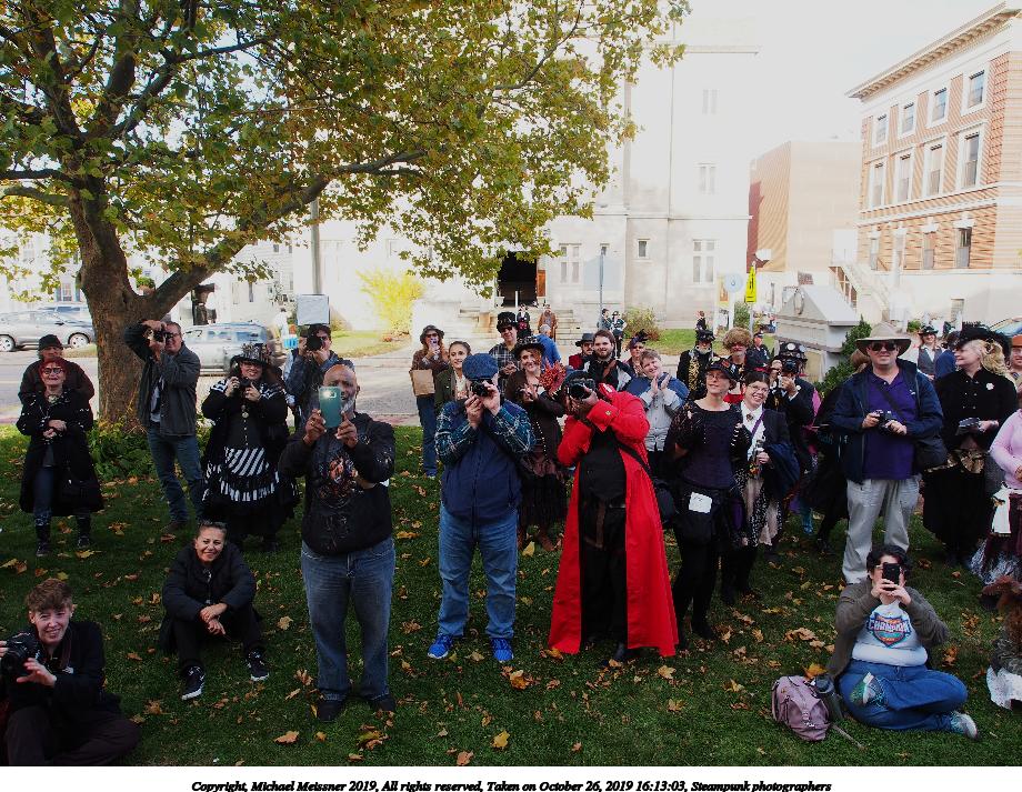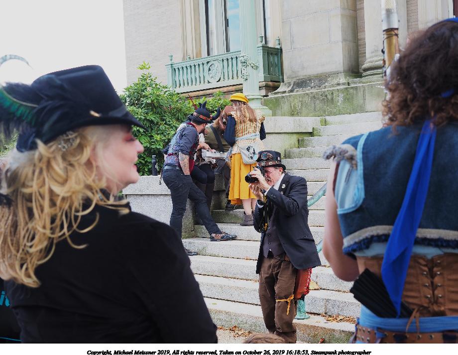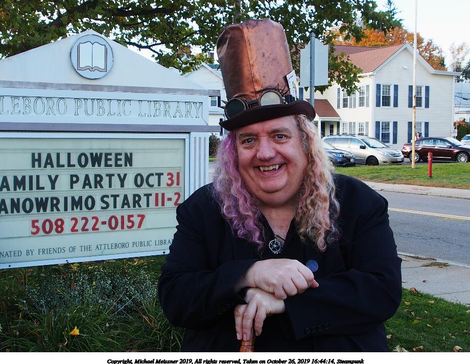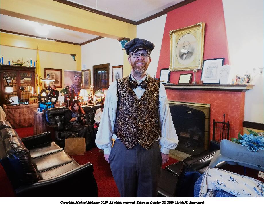 Picture #12: Steampunk photographers #5 Small: 920x713, 218,183 bytes (214K), (html file) Large: 4600x3450, 11,696,991 bytes (12M), (html file) Copyright, Michael Meissner 2019, All rights reserved Olympus E-M5-I camera with Olympus-m43 12-50mm f/3.5-6.3 lens f/3.5, ISO 200, 1/80 sec, 12.0mm, auto mode, vivid color, SHQ, spot metering, IS1 (All Direction Shake IS), noise filter low 35mm equivalent focal length 24.0mm Programs used: crop, gimp, raw therapee Taken by Michael Meissner on October 26, 2019 16:29:37 Last modified on April 02, 2020 at 02:40 |
