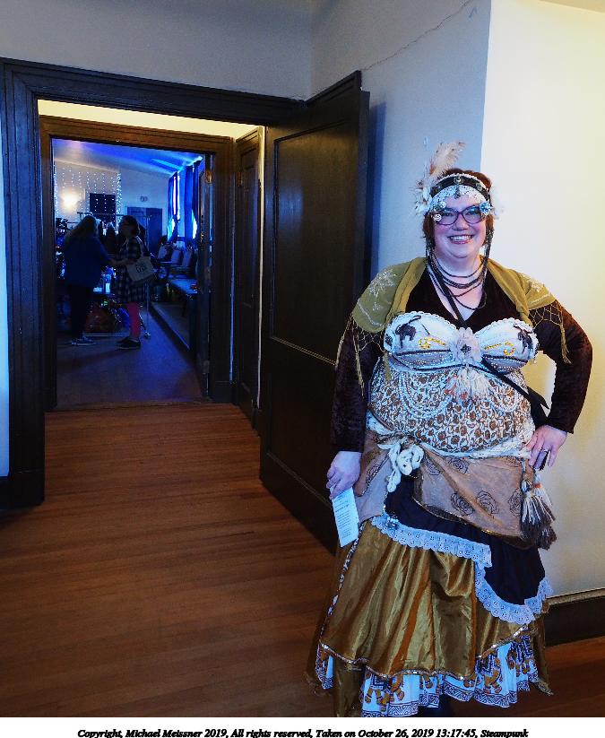 Picture #13: Steampunk photographers #4 Small: 920x713, 217,567 bytes (213K), (html file) Large: 4600x3450, 12,863,859 bytes (13M), (html file) Copyright, Michael Meissner 2019, All rights reserved Olympus E-M5-I camera with Olympus-m43 12-50mm f/3.5-6.3 lens f/3.5, ISO 200, 1/60 sec, 12.0mm, auto mode, vivid color, SHQ, spot metering, IS1 (All Direction Shake IS), noise filter low 35mm equivalent focal length 24.0mm Programs used: crop, gimp, raw therapee Taken by Michael Meissner on October 26, 2019 16:29:34 Last modified on April 02, 2020 at 02:39 |
