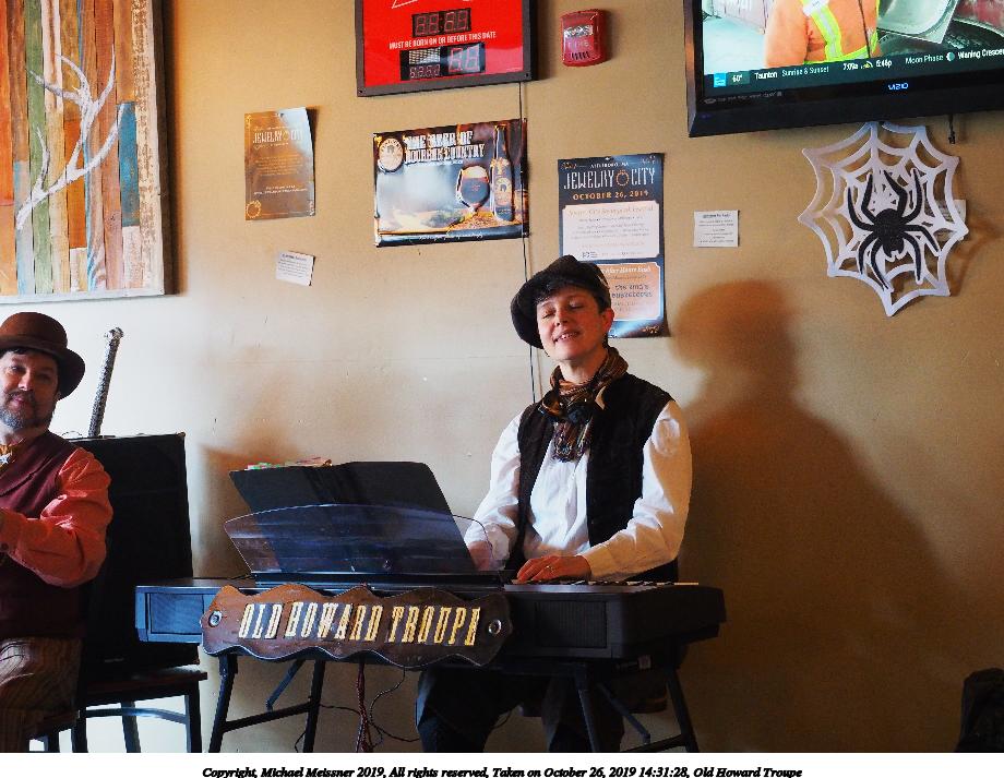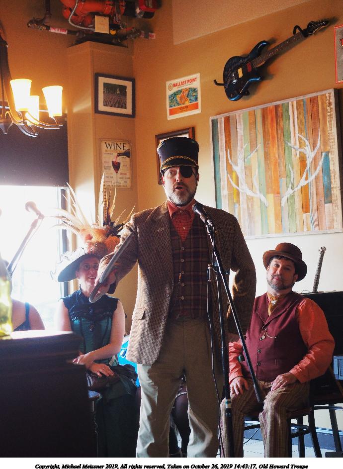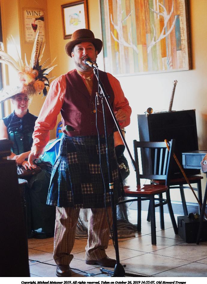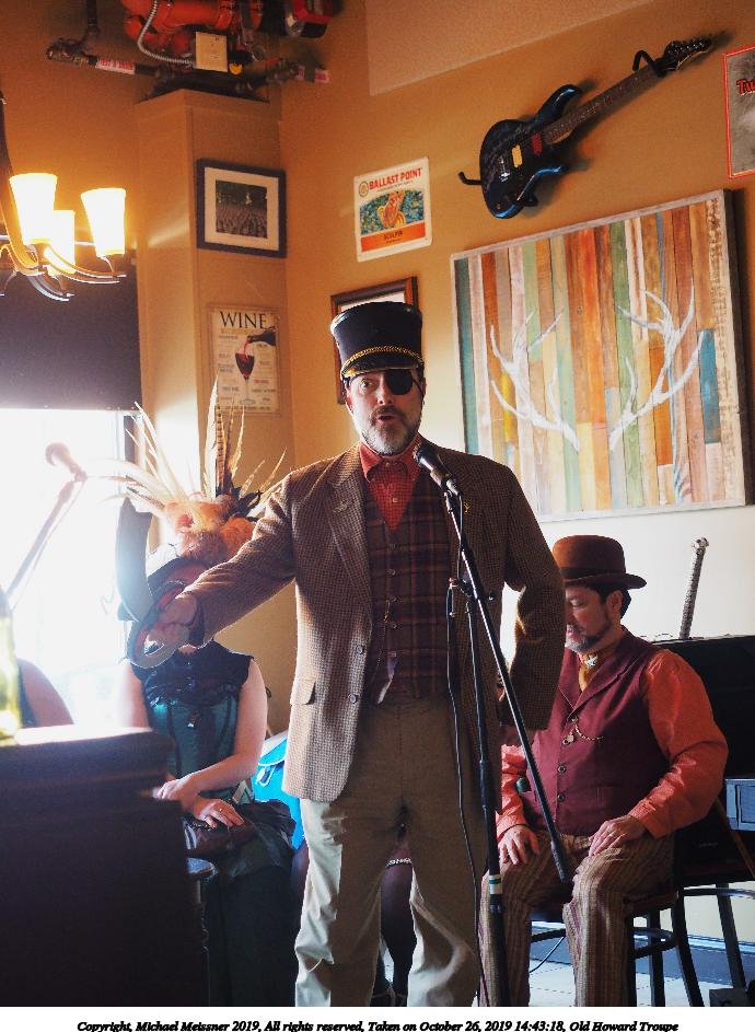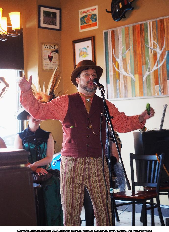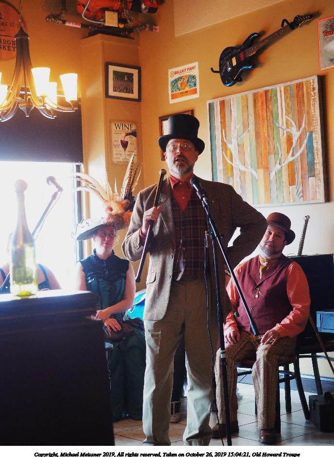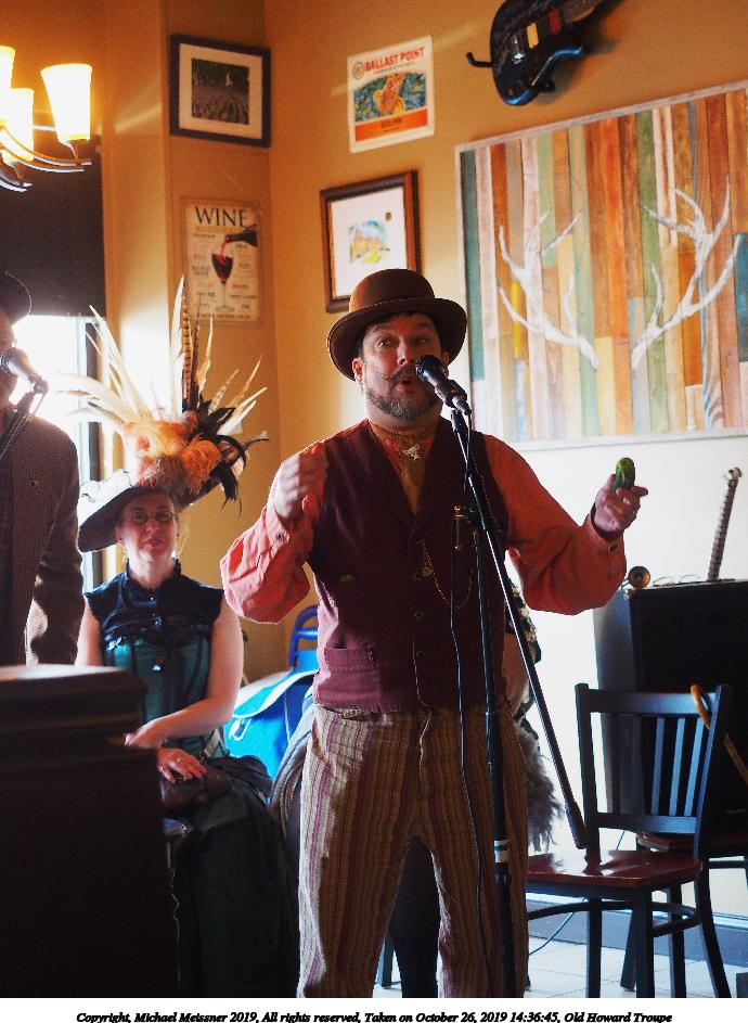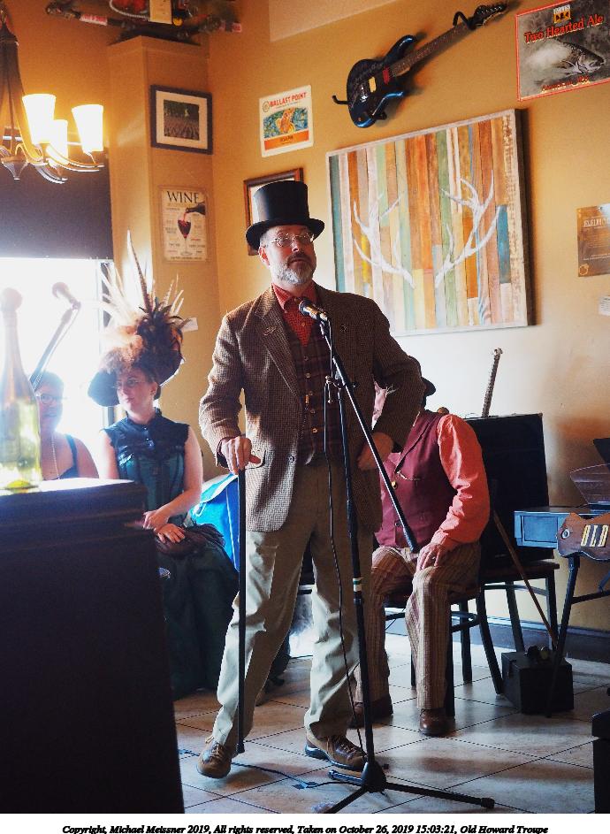Picture #47: Old Howard Troupe #27 Small: 920x713, 144,833 bytes (142K), (html file) Large: 4600x3450, 4,098,458 bytes (3.9M), (html file) Copyright, Michael Meissner 2019, All rights reserved Olympus E-M10-II camera with Olympus-m43 12-40mm f/2.8 lens f/2.8, ISO 800, flash (-0.33 flash compensation), 1/60 sec, 24.0mm, auto mode, vivid color, auto gradation, SHQ, center weight metering, noise filter low, anti-shock 35mm equivalent focal length 48.0mm Programs used: crop, raw therapee Taken by Michael Meissner on October 26, 2019 15:17:13 Last modified on April 02, 2020 at 02:21 |