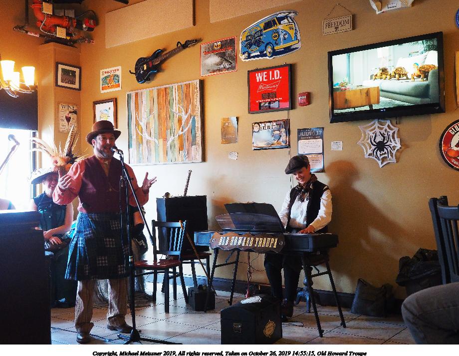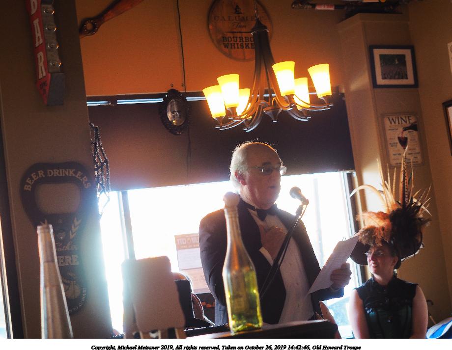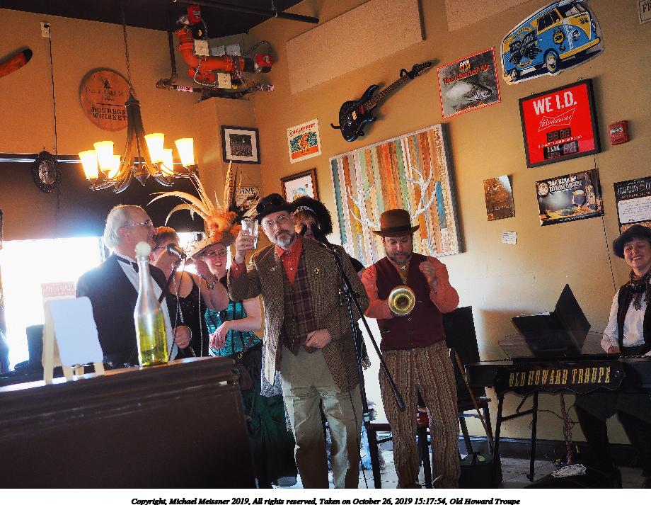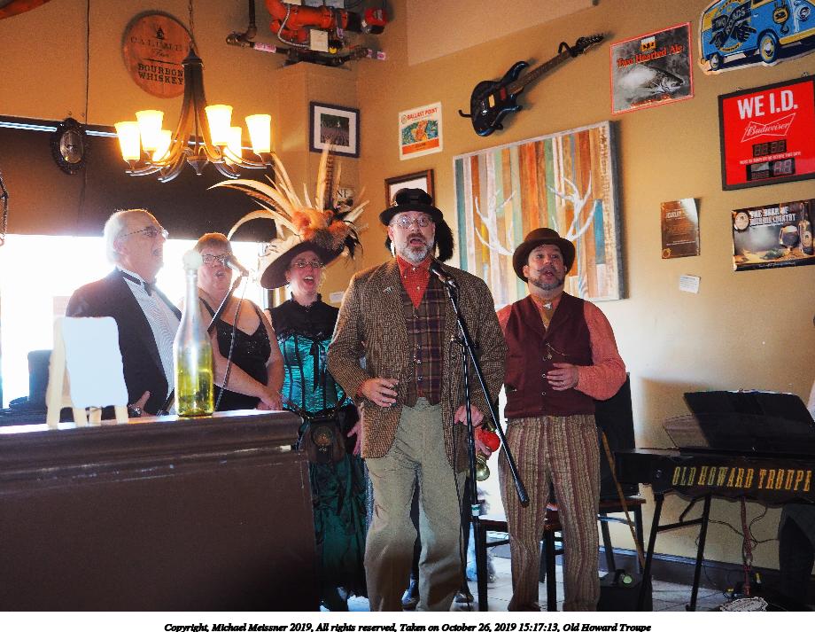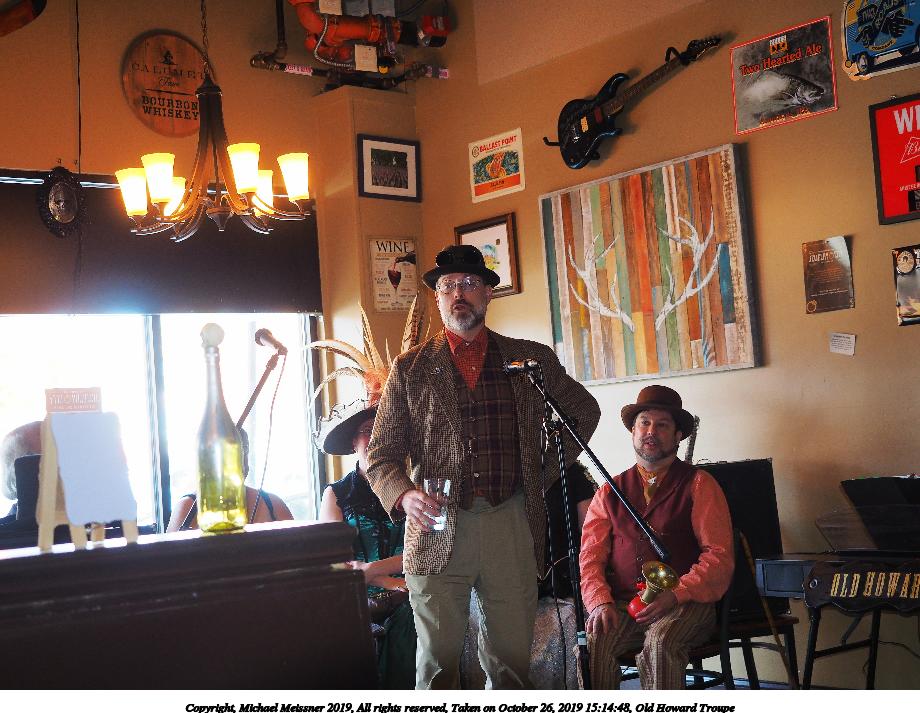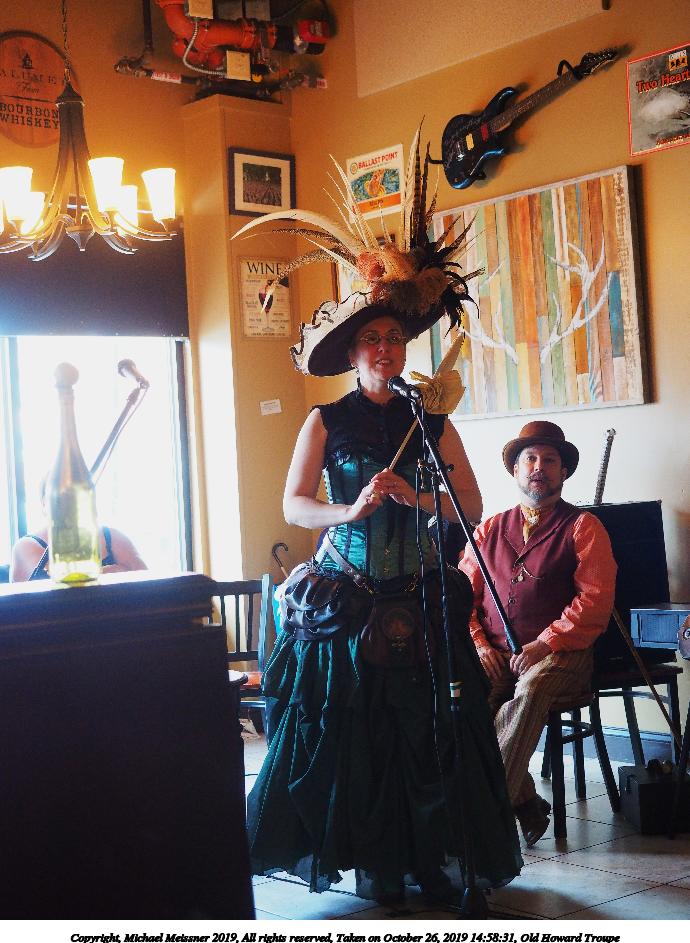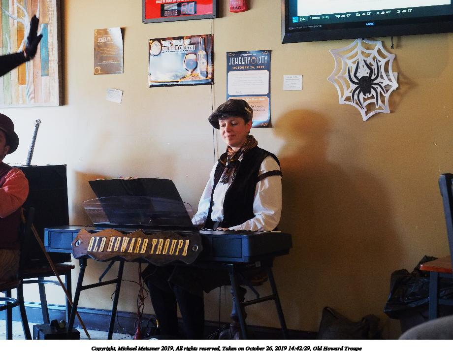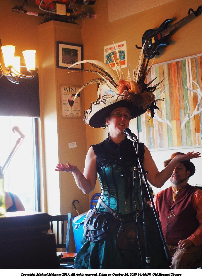 Picture #47: Old Howard Troupe #27 Small: 920x713, 144,833 bytes (142K), (html file) Large: 4600x3450, 4,098,458 bytes (3.9M), (html file) Copyright, Michael Meissner 2019, All rights reserved Olympus E-M10-II camera with Olympus-m43 12-40mm f/2.8 lens f/2.8, ISO 800, flash (-0.33 flash compensation), 1/60 sec, 24.0mm, auto mode, vivid color, auto gradation, SHQ, center weight metering, noise filter low, anti-shock 35mm equivalent focal length 48.0mm Programs used: crop, raw therapee Taken by Michael Meissner on October 26, 2019 15:17:13 Last modified on April 02, 2020 at 02:21 |