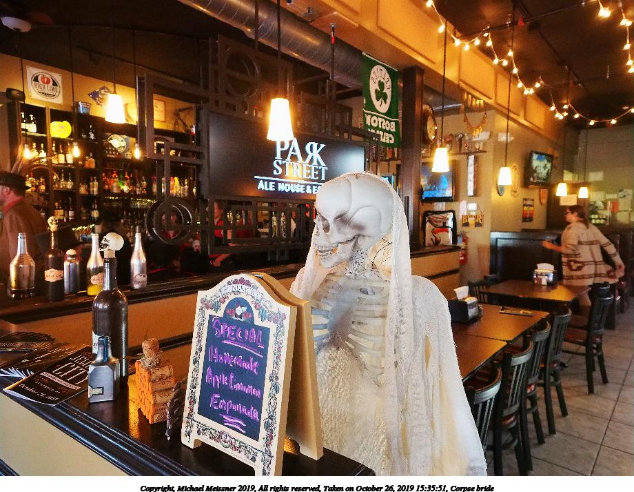 Picture #91: Corpse bride Small: 920x713, 159,119 bytes (156K), (html file) Large: 4600x3450, 4,592,688 bytes (4.4M), (html file) Copyright, Michael Meissner 2019, All rights reserved Olympus E-M5-I camera with Olympus-m43 12-50mm f/3.5-6.3 lens f/3.5, ISO 3200, 1/60 sec, 12.0mm, auto mode, vivid color, SHQ, spot metering, IS1 (All Direction Shake IS), noise filter low 35mm equivalent focal length 24.0mm Programs used: crop, raw therapee Taken by Michael Meissner on October 26, 2019 15:35:51 Last modified on April 02, 2020 at 01:31 |