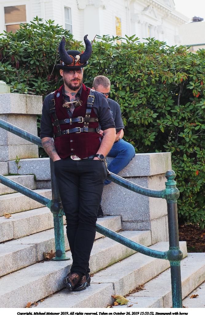 Picture #86: Steampunk with horns Small: 667x1023, 198,458 bytes (194K), (html file) Large: 2000x3000, 3,352,597 bytes (3.2M), (html file) Copyright, Michael Meissner 2019, All rights reserved Olympus E-M10-II camera with Olympus-m43 12-40mm f/2.8 lens f/4.0, ISO 200, 1/160 sec, 34.0mm, auto mode, vivid color, auto gradation, SHQ, center weight metering, noise filter low, anti-shock 35mm equivalent focal length 68.0mm Programs used: crop, gimp, raw therapee, rotate left Taken by Michael Meissner on October 26, 2019 15:53:52 Last modified on April 02, 2020 at 01:34 |