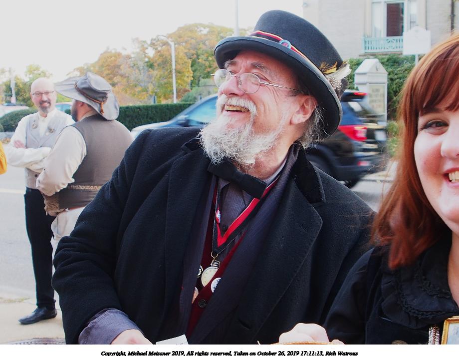 Picture #1: Rich Watrous Small: 920x713, 102,865 bytes (101K), (html file) Large: 4600x3450, 2,200,235 bytes (2.1M), (html file) Copyright, Michael Meissner 2019, All rights reserved Olympus E-M5-I camera with Olympus-m43 12-50mm f/3.5-6.3 lens f/3.5, ISO 500, 1/60 sec, 12.0mm, auto mode, vivid color, SHQ, spot metering, digital zoom x2, IS1 (All Direction Shake IS), noise filter low 35mm equivalent focal length 48.0mm, digital zoom x2 Programs used: crop, raw therapee Taken by Michael Meissner on October 26, 2019 17:11:13 Last modified on April 02, 2020 at 02:47 |