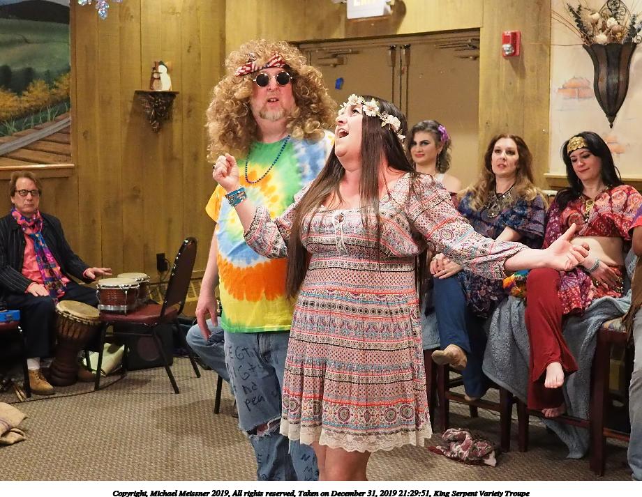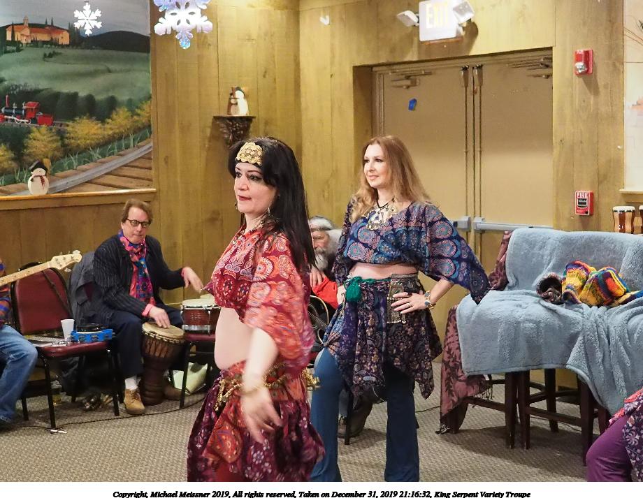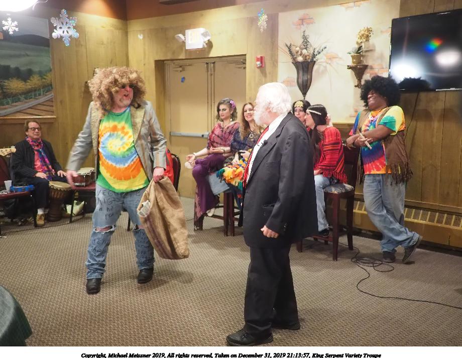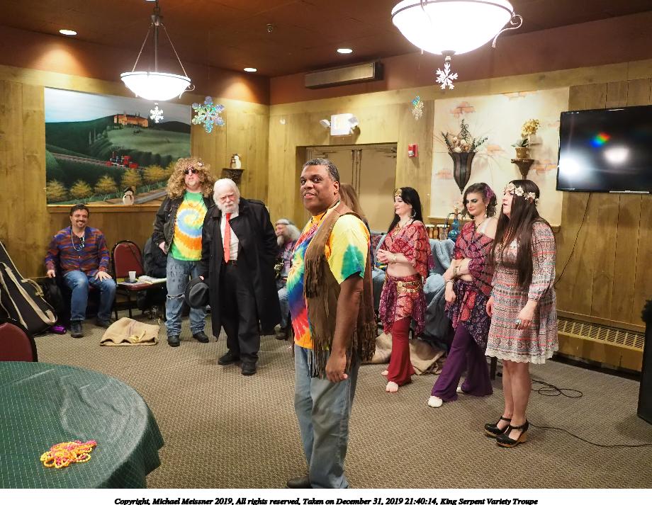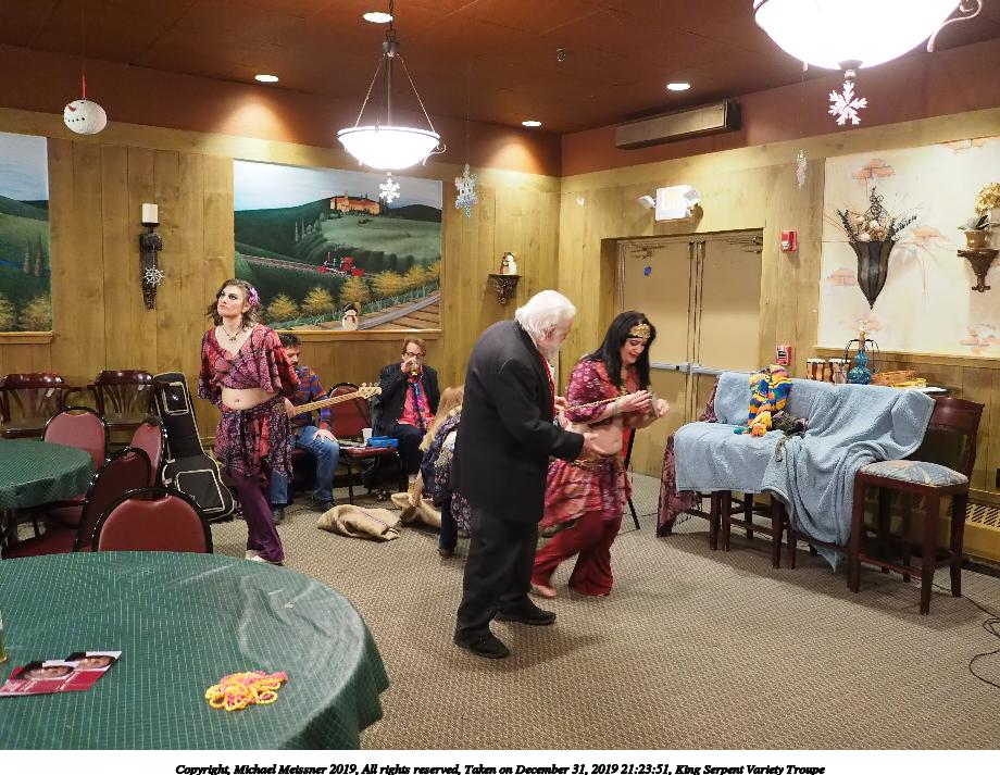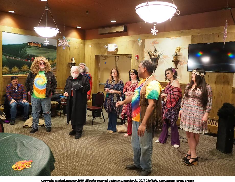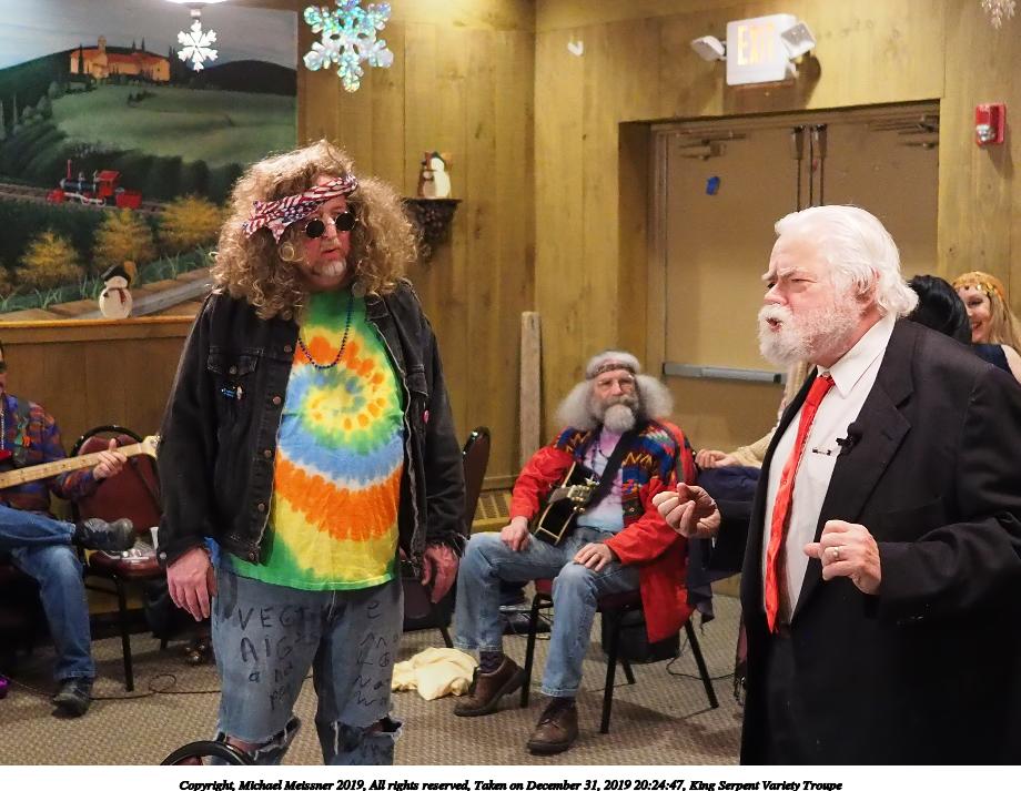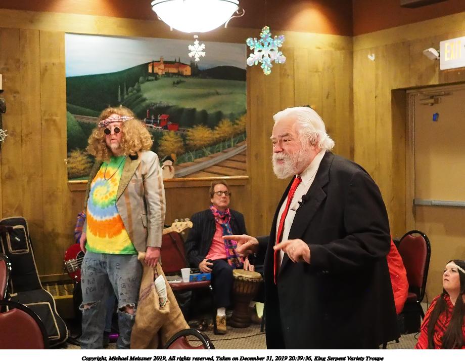 Picture #50: King Serpent Variety Troupe #50 Small: 920x713, 145,115 bytes (142K), (html file) Large: 4600x3450, 2,687,229 bytes (2.6M), (html file) Copyright, Michael Meissner 2019, All rights reserved Olympus E-M1-I camera with Panasonic-Leica 15mm f/1.7 lens f/1.7, ISO 3200, 1/60 sec, 15.0mm, auto mode, vivid color, SHQ, center weight metering, digital zoom x2, IS Auto, noise filter low, anti-shock 35mm equivalent focal length 60.0mm, digital zoom x2 Programs used: crop, raw therapee Taken by Michael Meissner on December 31, 2019 21:16:32 Last modified on April 02, 2020 at 22:39 |