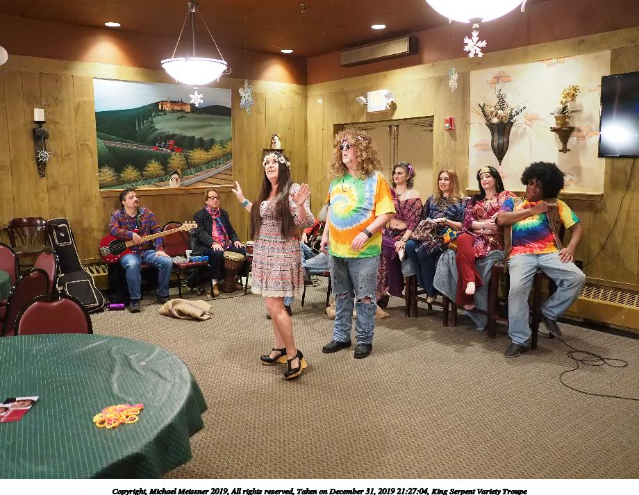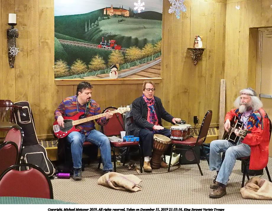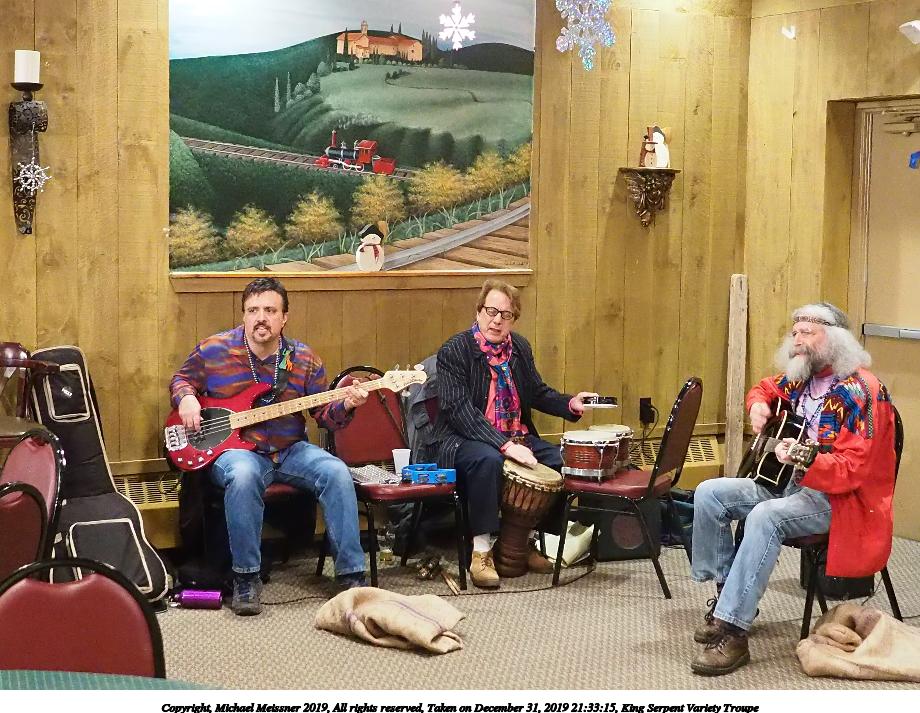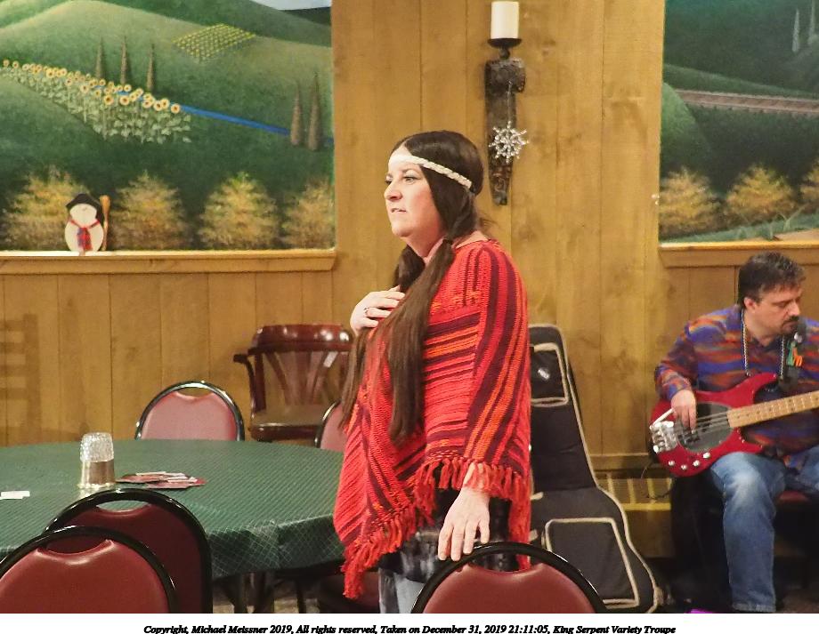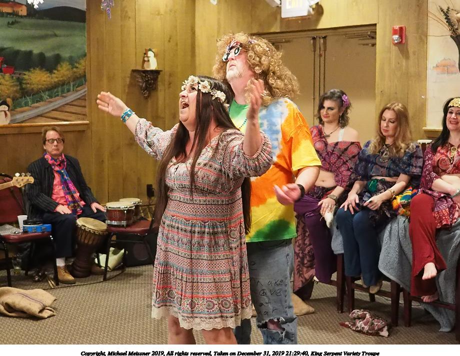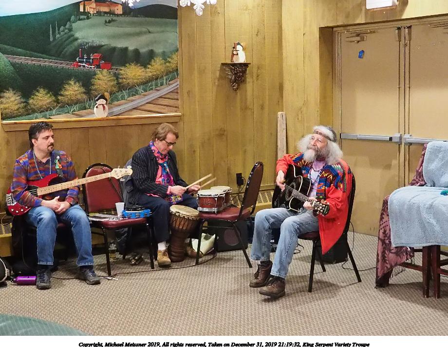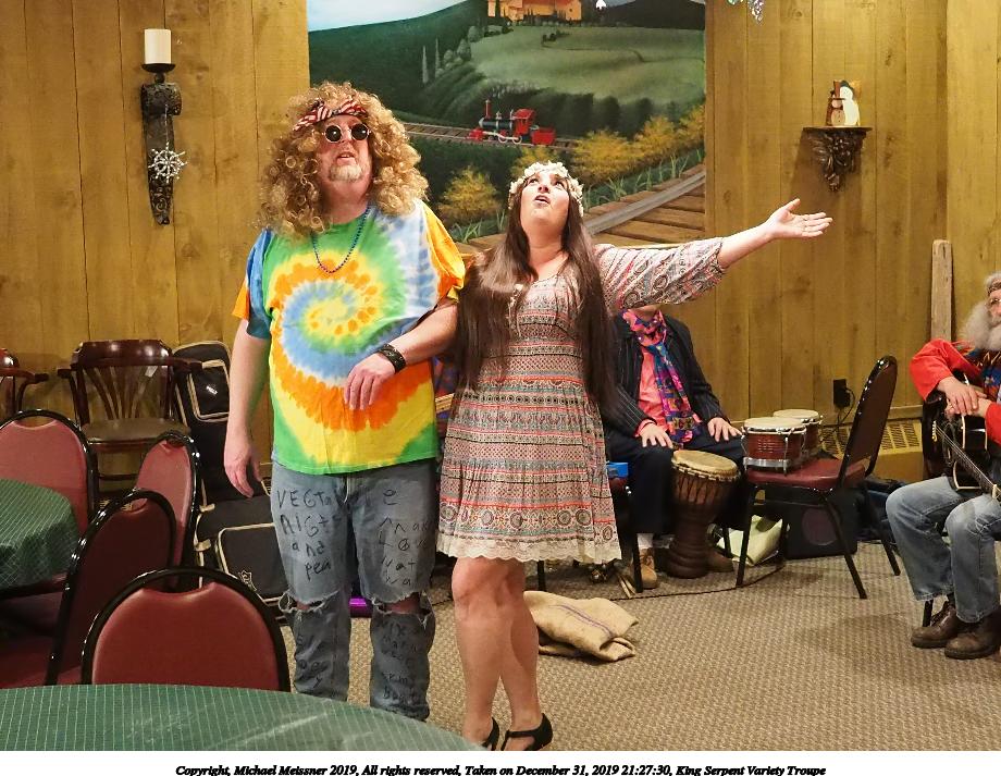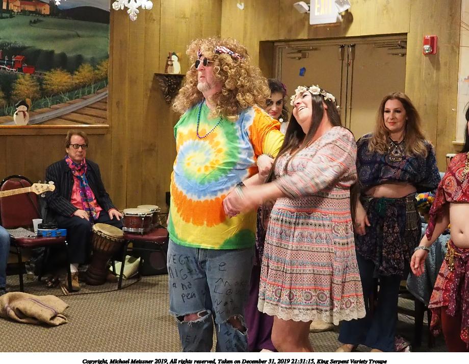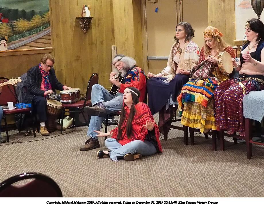 Picture #50: King Serpent Variety Troupe #50 Small: 920x713, 145,115 bytes (142K), (html file) Large: 4600x3450, 2,687,229 bytes (2.6M), (html file) Copyright, Michael Meissner 2019, All rights reserved Olympus E-M1-I camera with Panasonic-Leica 15mm f/1.7 lens f/1.7, ISO 3200, 1/60 sec, 15.0mm, auto mode, vivid color, SHQ, center weight metering, digital zoom x2, IS Auto, noise filter low, anti-shock 35mm equivalent focal length 60.0mm, digital zoom x2 Programs used: crop, raw therapee Taken by Michael Meissner on December 31, 2019 21:16:32 Last modified on April 02, 2020 at 22:39 |