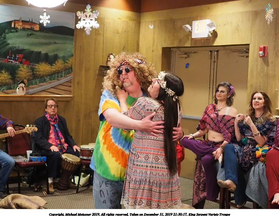 Picture #90: King Serpent Variety Troupe #90 Small: 920x713, 162,538 bytes (159K), (html file) Large: 4600x3450, 3,523,831 bytes (3.4M), (html file) Copyright, Michael Meissner 2019, All rights reserved Olympus E-M1-I camera with Panasonic-Leica 15mm f/1.7 lens f/1.8, ISO 5000, 1/60 sec, 15.0mm, auto mode, vivid color, SHQ, center weight metering, IS Auto, noise filter low, anti-shock 35mm equivalent focal length 30.0mm Programs used: crop, raw therapee Taken by Michael Meissner on December 31, 2019 21:38:56 Last modified on April 02, 2020 at 22:49 |