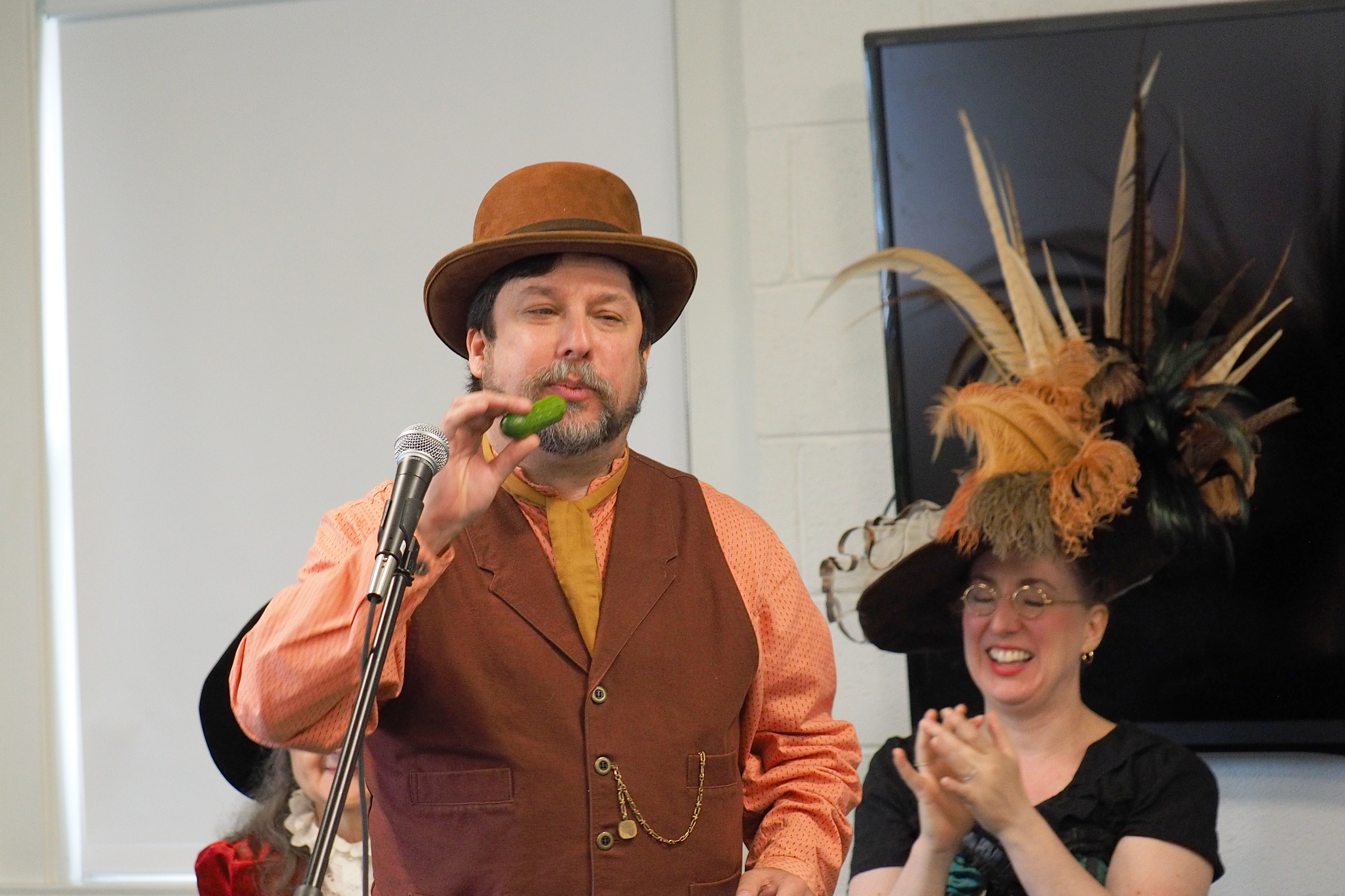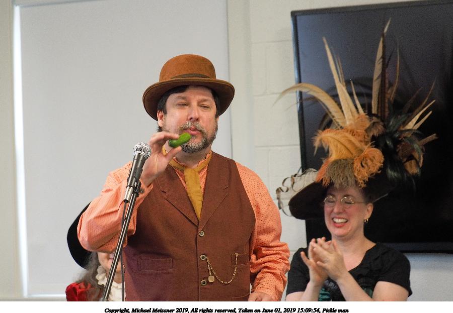 Picture #53: Pickle man Small: 900x623, 86,268 bytes (85K), (html file) Large: 3600x2400, 5,894,689 bytes (5.6M), (html file) Copyright, Michael Meissner 2019, All rights reserved Olympus E-M1-I camera with Panasonic 35-100mm f/2.8 lens f/2.8, ISO 800, 1/125 sec, 55.0mm, auto mode, vivid color, SHQ, center weight metering, IS Auto, noise filter low, anti-shock 35mm equivalent focal length 110.0mm Programs used: gimp Taken by Michael Meissner on June 01, 2019 15:09:54 Last modified on September 02, 2019 at 19:32 |