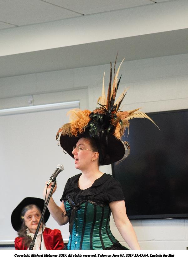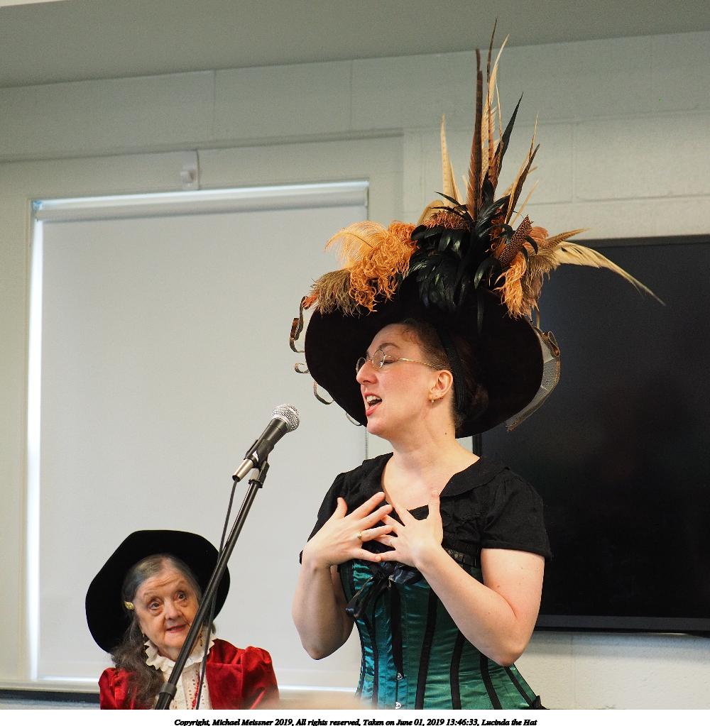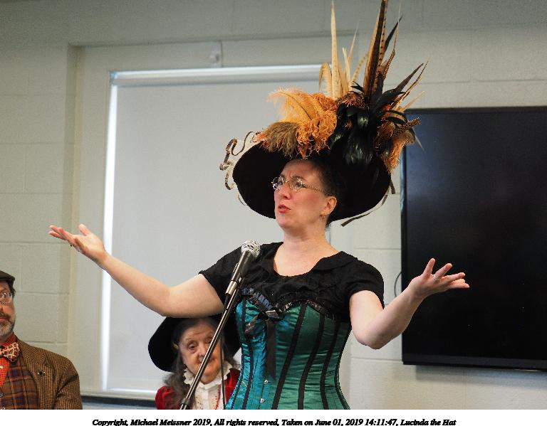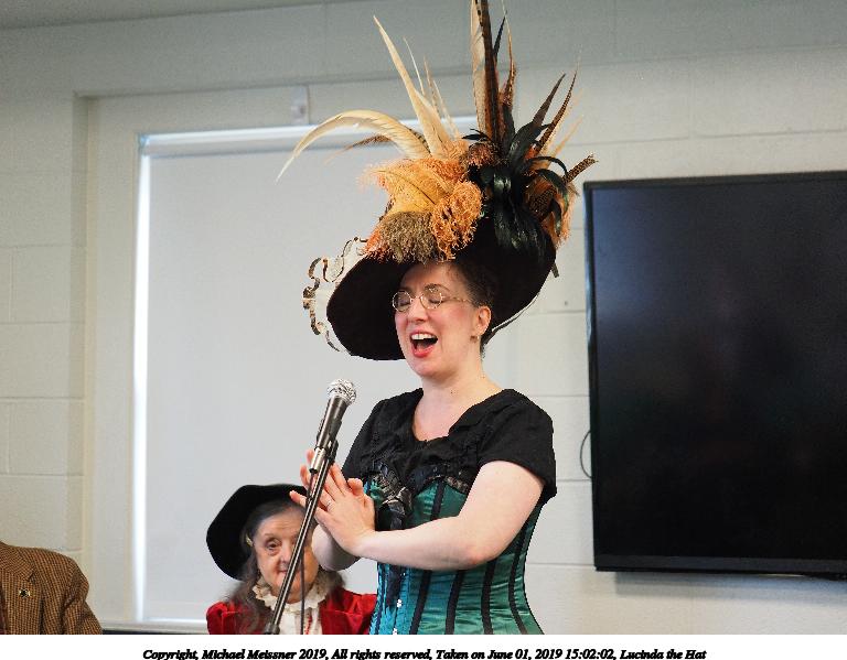 Picture #35: Lucinda the Hat #6 Small: 768x599, 81,909 bytes (80K), (html file) Large: 4608x3456, 9,179,062 bytes (8.8M), (html file) Copyright, Michael Meissner 2019, All rights reserved Olympus E-M1-I camera with Panasonic 35-100mm f/2.8 lens f/2.8, ISO 1000, 1/125 sec, 62.0mm, auto mode, vivid color, SHQ, center weight metering, IS Auto, noise filter low, anti-shock 35mm equivalent focal length 124.0mm Taken by Michael Meissner on June 01, 2019 14:10:26 Last modified on September 02, 2019 at 19:17 |