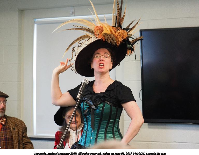 Picture #36: Lucinda the Hat #7 Small: 768x599, 77,905 bytes (77K), (html file) Large: 4608x3456, 8,342,992 bytes (8.0M), (html file) Copyright, Michael Meissner 2019, All rights reserved Olympus E-M1-I camera with Panasonic 35-100mm f/2.8 lens f/2.8, ISO 1000, 1/125 sec, 62.0mm, auto mode, vivid color, SHQ, center weight metering, IS Auto, noise filter low, anti-shock 35mm equivalent focal length 124.0mm Taken by Michael Meissner on June 01, 2019 14:11:47 Last modified on September 02, 2019 at 19:17 |