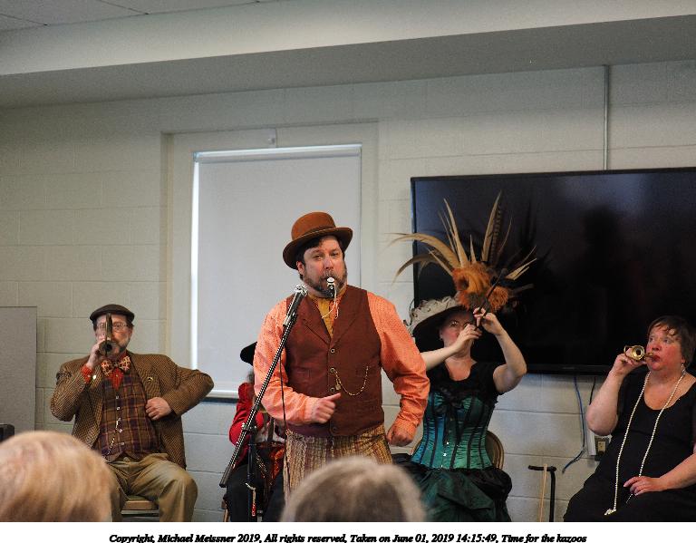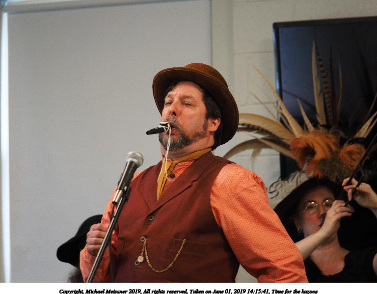 Picture #39: Time for the kazoos Small: 768x599, 71,850 bytes (71K), (html file) Large: 4608x3456, 8,423,051 bytes (8.0M), (html file) Copyright, Michael Meissner 2019, All rights reserved Olympus E-M1-I camera with Panasonic 35-100mm f/2.8 lens f/2.8, ISO 1000, 1/200 sec, 85.0mm, auto mode, vivid color, SHQ, center weight metering, IS Auto, noise filter low, anti-shock 35mm equivalent focal length 170.0mm Taken by Michael Meissner on June 01, 2019 14:15:41 Last modified on September 02, 2019 at 19:19 |
