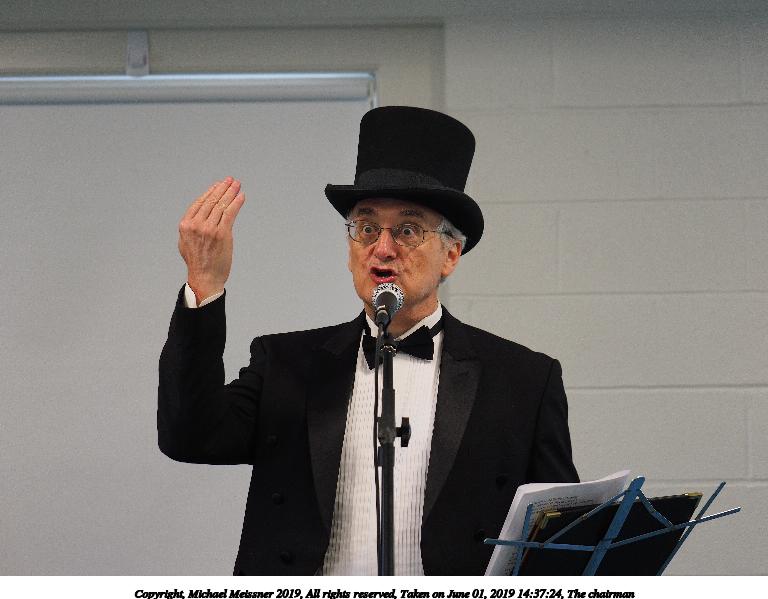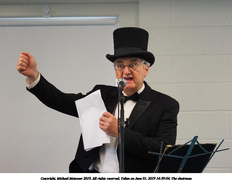 Picture #43: The chairman #5 Small: 768x599, 63,828 bytes (63K), (html file) Large: 4608x3456, 8,399,483 bytes (8.0M), (html file) Copyright, Michael Meissner 2019, All rights reserved Olympus E-M1-I camera with Panasonic 35-100mm f/2.8 lens f/2.8, ISO 640, 1/125 sec, 66.0mm, auto mode, vivid color, SHQ, center weight metering, IS Auto, noise filter low, anti-shock 35mm equivalent focal length 132.0mm Taken by Michael Meissner on June 01, 2019 14:37:24 Last modified on September 02, 2019 at 19:20 |