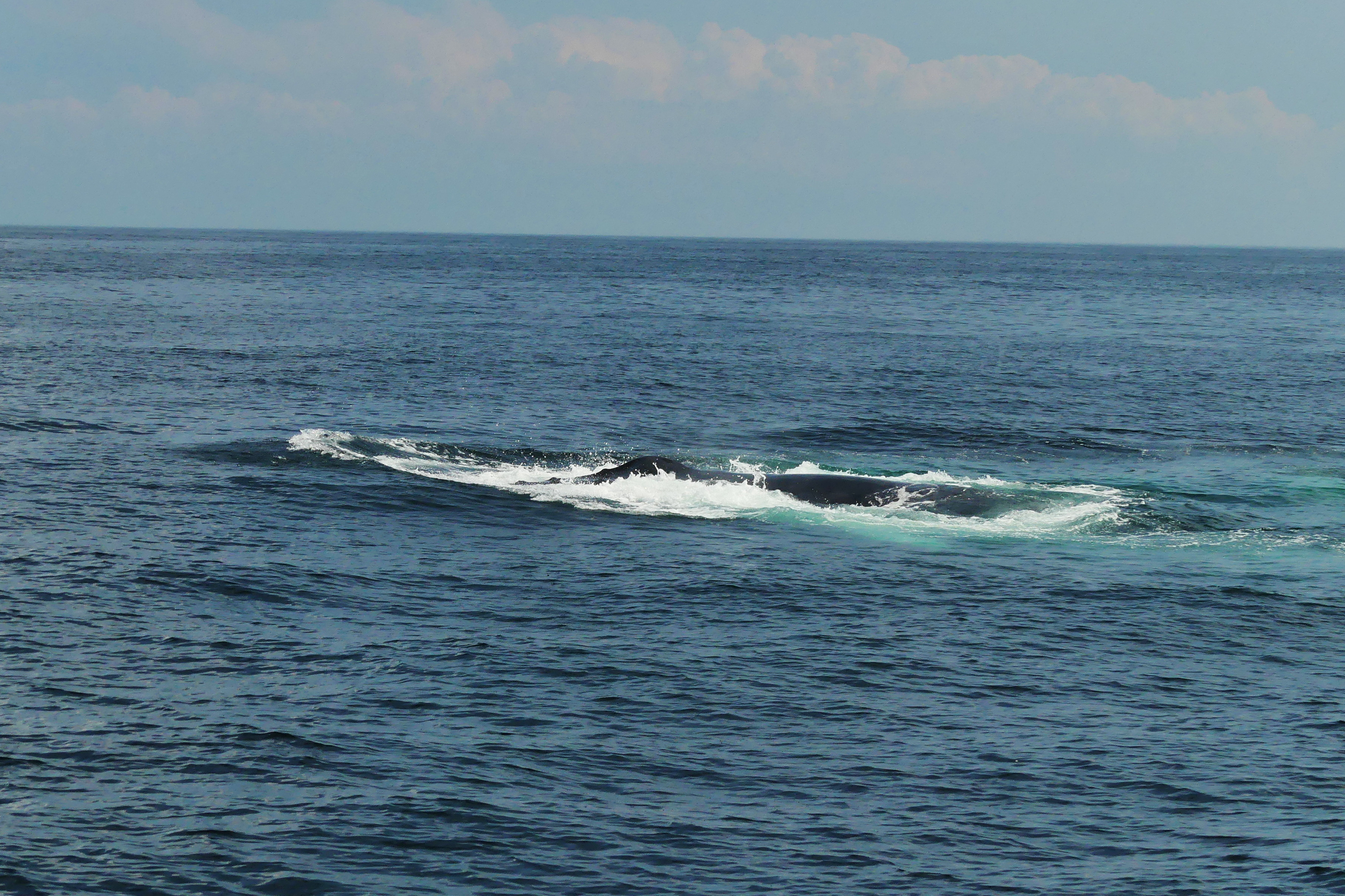Picture #23: Whale surfacing #5 Small: 1000x773, 188,222 bytes (184K), (html file) Large: 4000x3000, 3,760,377 bytes (3.6M), (html file) Copyright, Michael Meissner 2019, All rights reserved Panasonic FZ300 camera f/4.0, ISO 100, 1/1000 sec, 36.1mm, auto mode, auto wb (5600), matrix metering, bias -0.3, continous focus, image stabilization, normal color mode 35mm equivalent focal length 200.0mm Programs used: crop, raw therapee Taken by Michael Meissner on July 14, 2019 15:17:18 Last modified on December 03, 2019 at 23:21 |