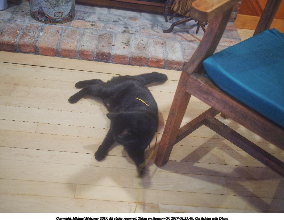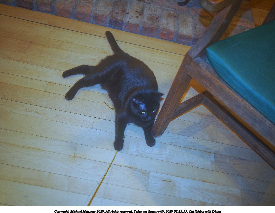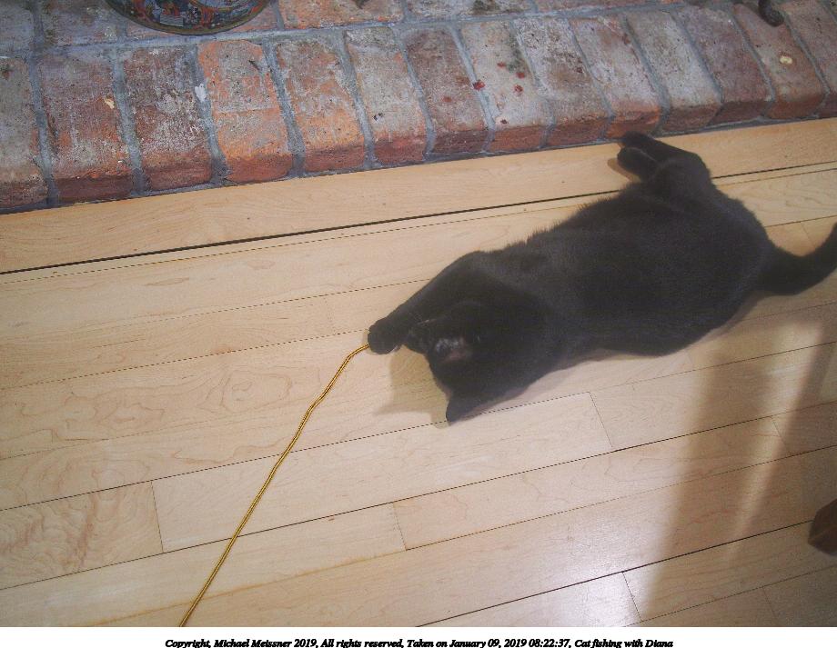 Picture #17: Cat fishing with Diana #2 920x713, 110,601 bytes (109K), (html file) Copyright, Michael Meissner 2019, All rights reserved Olympus E-M5-I camera with Panasonic 20mm f/1.7 lens f/1.8, ISO 640, 1/60 sec, 20.0mm, auto mode, vivid color, matrix metering, IS1 (All Direction Shake IS), noise filter low 35mm equivalent focal length 40.0mm Taken by Michael Meissner on January 09, 2019 08:22:37 Last modified on January 13, 2019 at 01:56 |