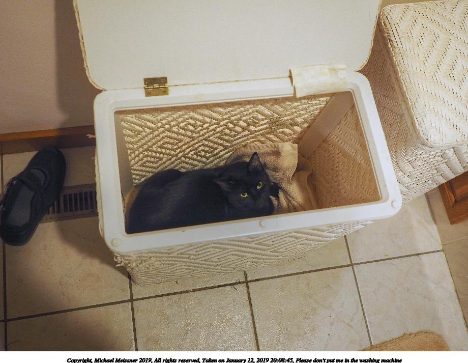 Picture #6: Please don't put me in the washing machine #2 920x713, 113,370 bytes (111K), (html file) Copyright, Michael Meissner 2019, All rights reserved Olympus E-M1-I camera with Olympus-m43 12-40mm f/2.8 lens f/2.8, ISO 1600, 1/60 sec, 27.0mm, auto mode, natural color, HQ, matrix metering, IS Auto, noise reduction auto 35mm equivalent focal length 54.0mm Programs used: crop, raw therapee Taken by Michael Meissner on January 12, 2019 20:08:50 Last modified on January 13, 2019 at 01:59 This picture is one of my favorites. |