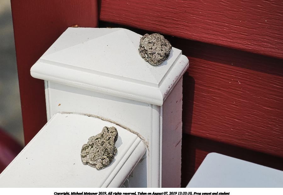 Picture #2: Frog sensei and student #2 900x623, 102,801 bytes (101K), (html file) Copyright, Michael Meissner 2019, All rights reserved Panasonic G85 camera with Olympus-m43 12-40mm f/2.8 lens f/5.6, ISO 200, 1/800 sec, 40.0mm, auto mode, auto wb (5700), matrix metering, continous focus, image stabilization, noise reduction 1 35mm equivalent focal length 80.0mm Programs used: crop, raw therapee Taken by Michael Meissner on August 07, 2019 13:33:10 Last modified on August 20, 2019 at 00:32 |