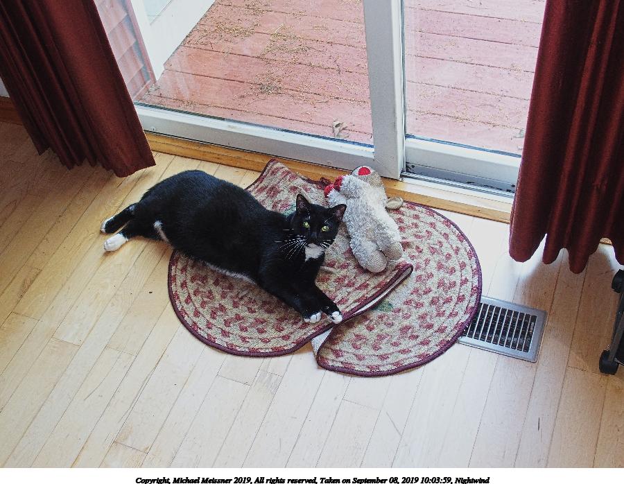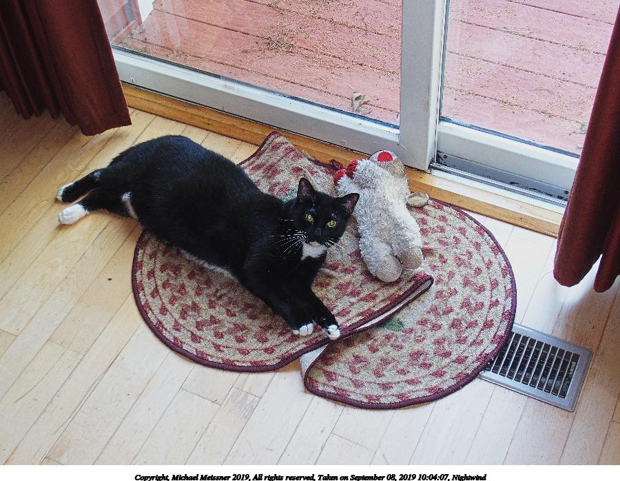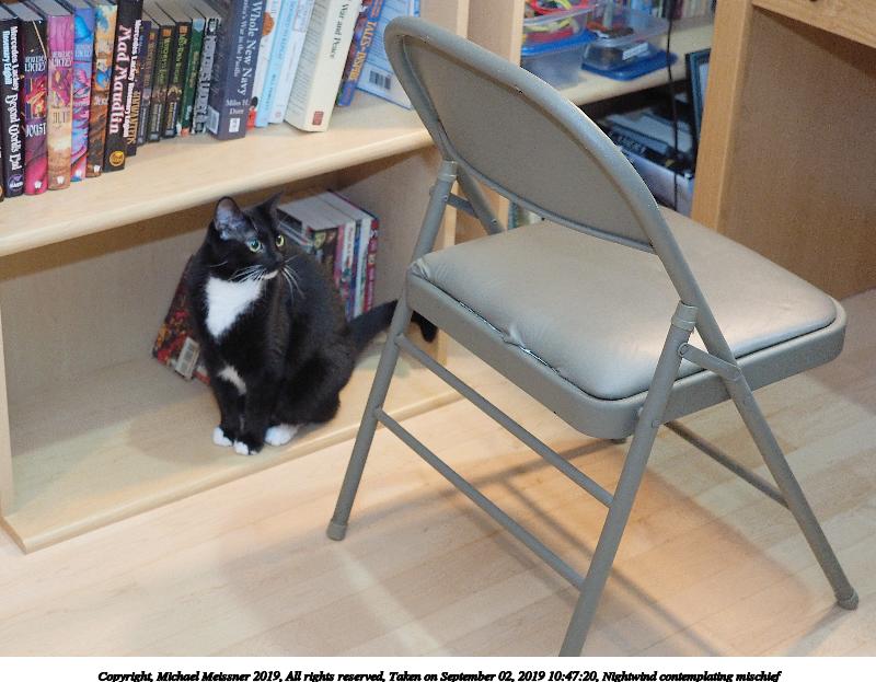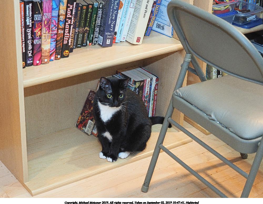 Picture #10: Nightwind contemplating mischief 800x623, 89,153 bytes (88K), (html file) Copyright, Michael Meissner 2019, All rights reserved Olympus E-M1-I camera with Olympus-m43 12-40mm f/2.8 lens f/2.8, ISO 640, FL-900R flash (+0.33 flash compensation), 1/60 sec, 23.0mm, auto mode, vivid color, SHQ, matrix metering, IS Auto, noise filter low, anti-shock 35mm equivalent focal length 46.0mm Programs used: crop, gimp Taken by Michael Meissner on September 02, 2019 10:47:20 Last modified on September 02, 2019 at 11:11 |