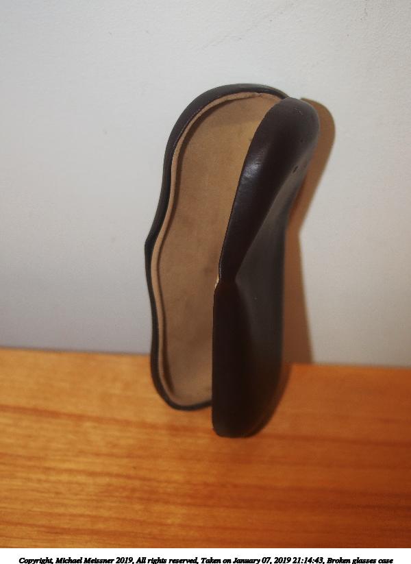The picture of the glasses case is the hard case I keep my glasses in. The case itself is destroyed, but the glasses inside came through ok. The prescription sunglasses that I was wearing had the left lens pop out, and it looks like it might be easy to put it back in (but even if the glasses are broken, they can be replaced).