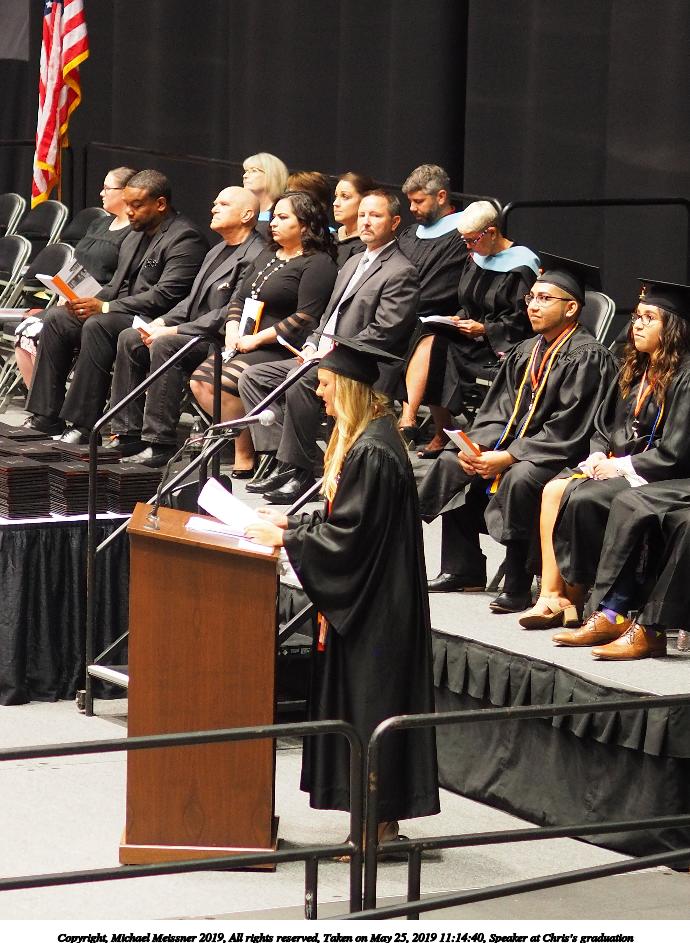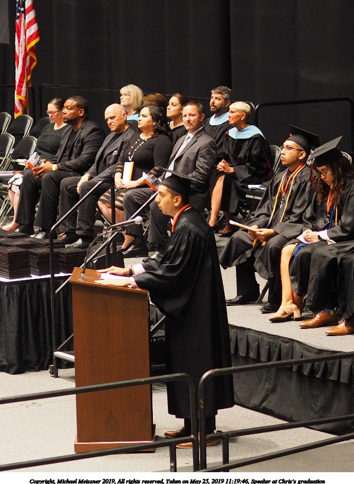 Picture #8: Speaker at Chris's graduation #3 690x943, 138,136 bytes (135K), (html file) Copyright, Michael Meissner 2019, All rights reserved Olympus E-M1-I camera with Olympus-m43 45mm f/1.8 lens f/1.8, ISO 800, 1/100 sec, 45.0mm, auto mode, vivid color, SHQ, matrix metering, bias -0.7, digital zoom x2, IS Auto, noise filter low, anti-shock 35mm equivalent focal length 180.0mm, digital zoom x2 Programs used: crop, raw therapee, rotate left Taken by Michael Meissner on May 25, 2019 11:19:46 Last modified on December 25, 2019 at 19:12 |