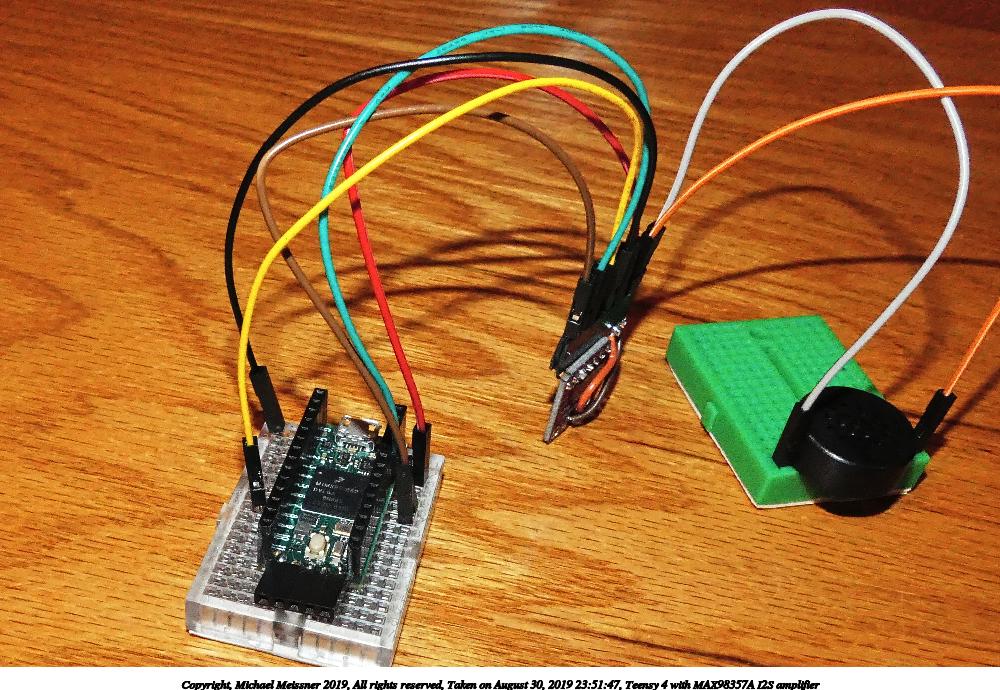 Picture #2: Teensy 4 with MAX98357A I2S amplifier 1000x773, 176,467 bytes (173K), (html file) Copyright, Michael Meissner 2019, All rights reserved Panasonic FZ300 camera f/5.6, ISO 100, flash, 1/80 sec, 9.8mm, aperture priority, auto wb (5800), matrix metering, bias -0.3, continous focus, image stabilization, normal color mode 35mm equivalent focal length 54.0mm Programs used: crop Taken by Michael Meissner on August 30, 2019 23:32:09 Last modified on August 30, 2019 at 23:55 |