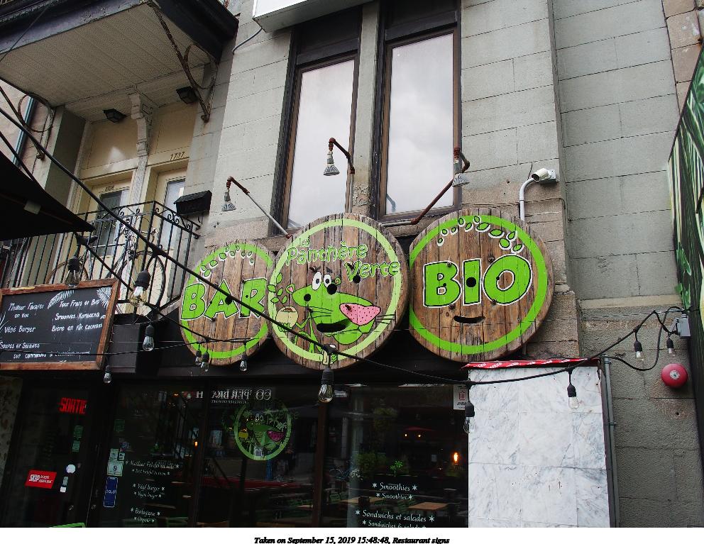 Picture #22: Restaurant signs 992x767, 178,308 bytes (175K), (html file) Olympus Stylus-1 camera f/3.5, ISO 100, 1/160 sec, 6.0mm, auto mode, vivid color, SHQ, matrix metering, IS Auto, noise reduction auto, noise filter low 35mm equivalent focal length 28.0mm Programs used: raw therapee Taken by Michael Meissner on September 15, 2019 15:48:48 Last modified on December 04, 2019 at 09:21 |