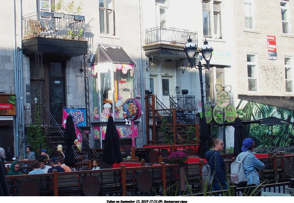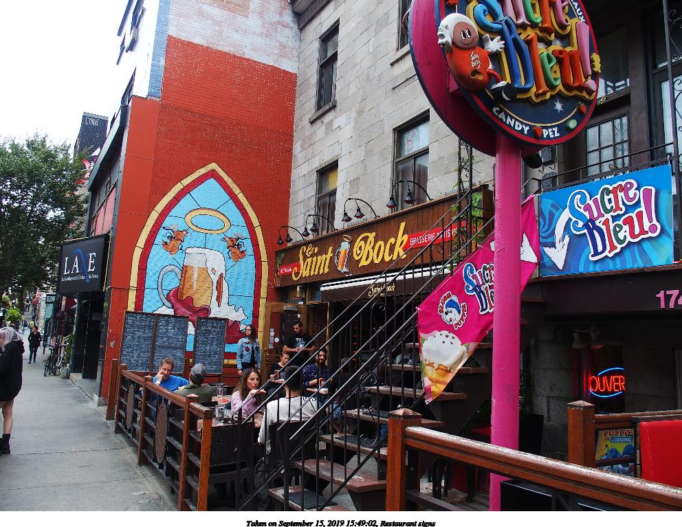 Picture #21: Restaurant signs #2 992x767, 206,443 bytes (202K), (html file) Olympus Stylus-1 camera f/3.5, ISO 100, 1/160 sec, 6.0mm, auto mode, vivid color, SHQ, matrix metering, IS Auto, noise reduction auto, noise filter low 35mm equivalent focal length 28.0mm Programs used: raw therapee Taken by Michael Meissner on September 15, 2019 15:49:02 Last modified on December 04, 2019 at 09:22 |