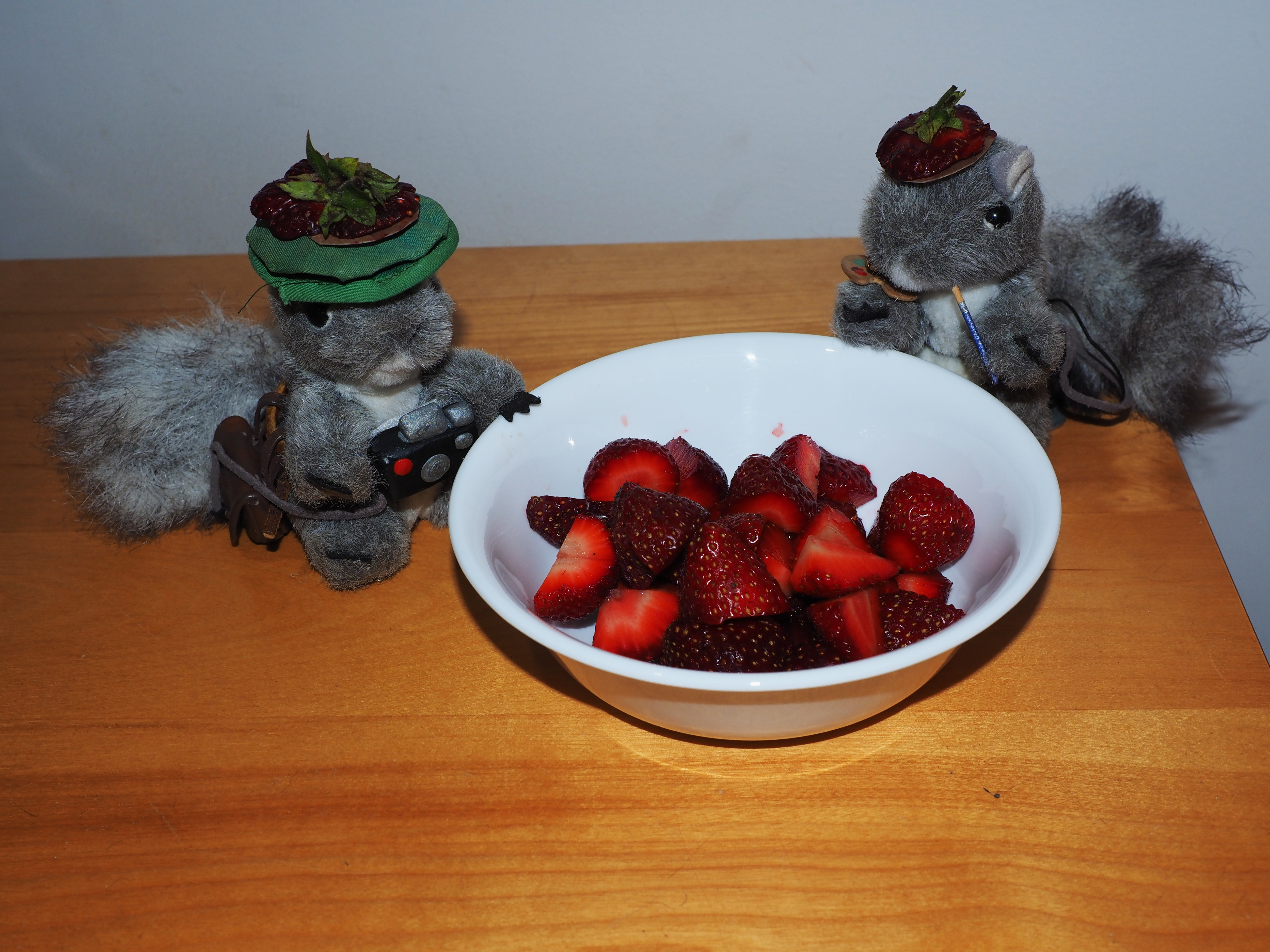 Picture #11: Strawberry Squirrels Forever #2 Small: 1000x773, 107,920 bytes (106K), (html file) Large: 5000x3750, 2,847,921 bytes (2.7M), (html file) Copyright, Michael Meissner 2020, All rights reserved Olympus E-M5-III camera with Olympus-m43 12-40mm f/2.8 lens f/8.0, ISO 200, flash, 1/60 sec, 21.0mm, aperture priority, vivid color, SHQ, matrix metering, IS Auto 35mm equivalent focal length 42.0mm Programs used: crop, raw therapee Taken by Michael Meissner on June 15, 2020 23:14:15 Last modified on June 16, 2020 at 03:24 This picture is one of my favorites. |
