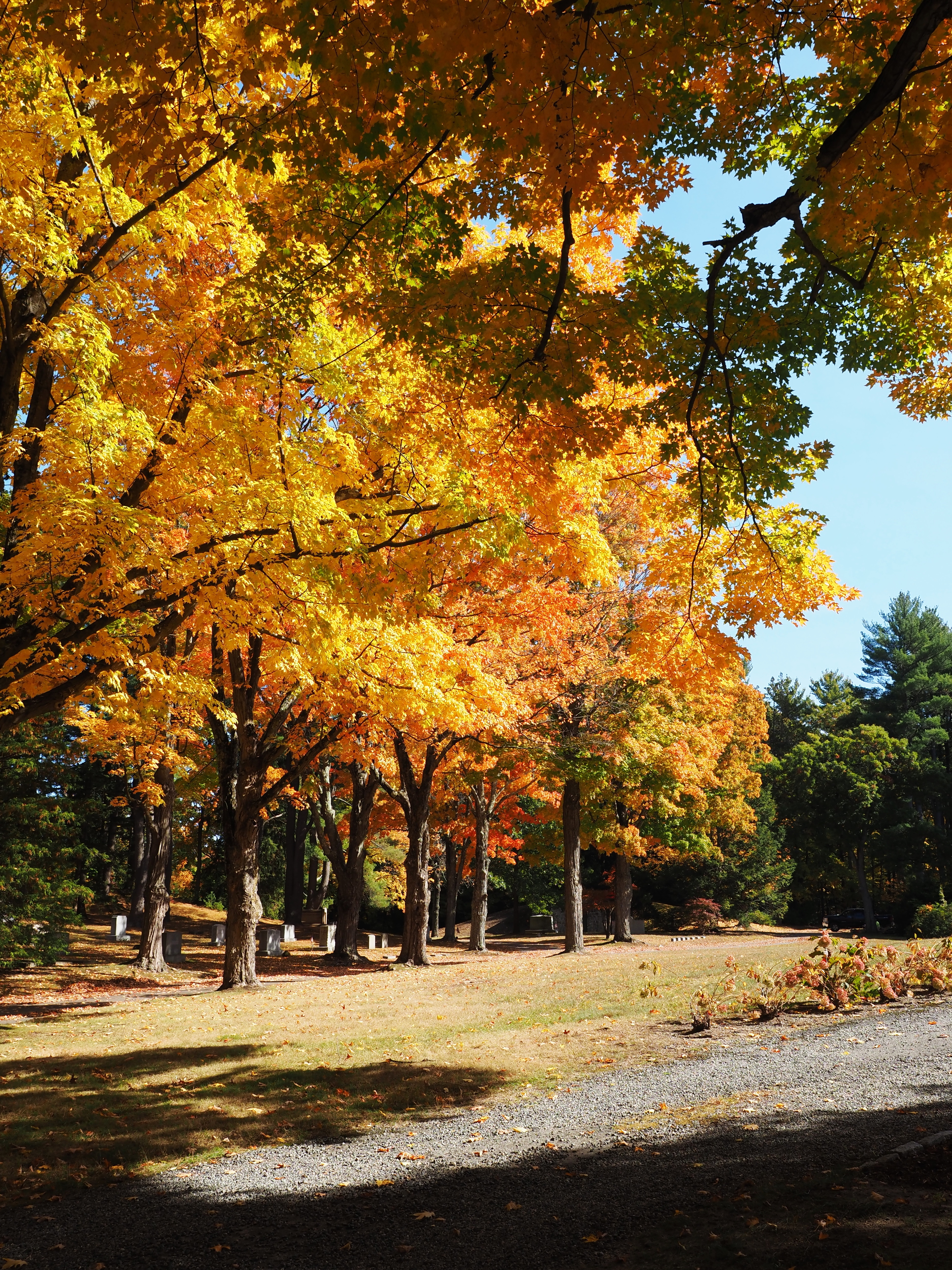Picture #45: Fall in West Parish Garden Cemetery, Andover, MA #4 Small: 1000x773, 347,879 bytes (340K), (html file) Large: 5000x3750, 9,313,379 bytes (8.9M), (html file) Copyright, Michael Meissner 2020, All rights reserved Olympus E-M5-III camera with Olympus-m43 12-40mm f/2.8 lens f/6.3, ISO 200, 1/320 sec, 20.0mm, auto mode, vivid color, SHQ, matrix metering, IS Auto 35mm equivalent focal length 40.0mm Programs used: crop, raw therapee Taken by Michael Meissner on October 15, 2020 13:12:17 Last modified on December 30, 2020 at 23:46 |