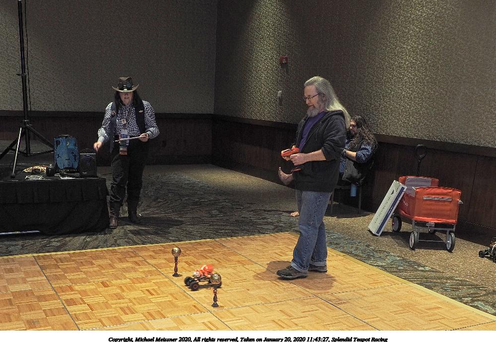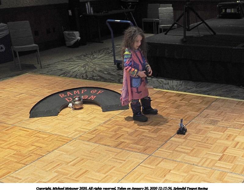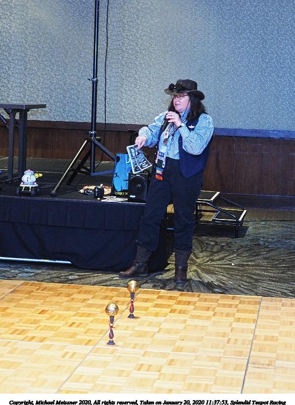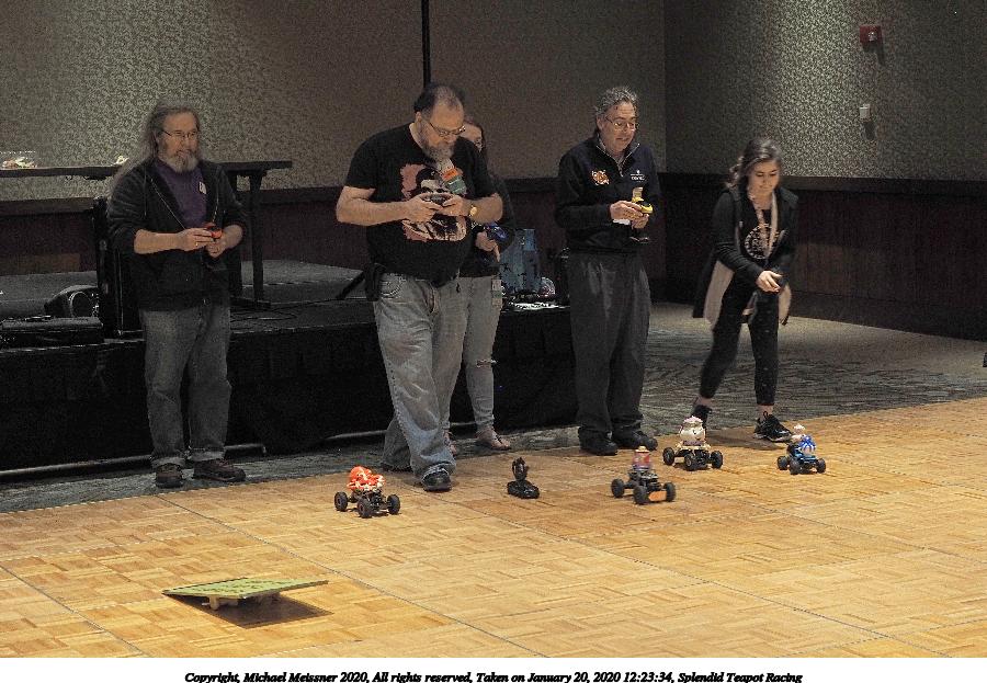 Picture #53: Splendid Teapot Racing #4 Small: 1000x690, 172,111 bytes (169K), (html file) Large: 3000x2000, 5,692,232 bytes (5.4M), (html file) Copyright, Michael Meissner 2020, All rights reserved Olympus E-M1-I camera with Olympus-m43 12-40mm f/2.8 lens f/2.8, ISO 250, FL-900R flash (+0.33 flash compensation), 1/60 sec, 13.0mm, auto mode, vivid color, SHQ, center weight metering, IS Auto, noise filter low, anti-shock 35mm equivalent focal length 26.0mm Programs used: crop, gimp, raw therapee Taken by Michael Meissner on January 20, 2020 11:43:27 Last modified on June 12, 2020 at 20:28 |