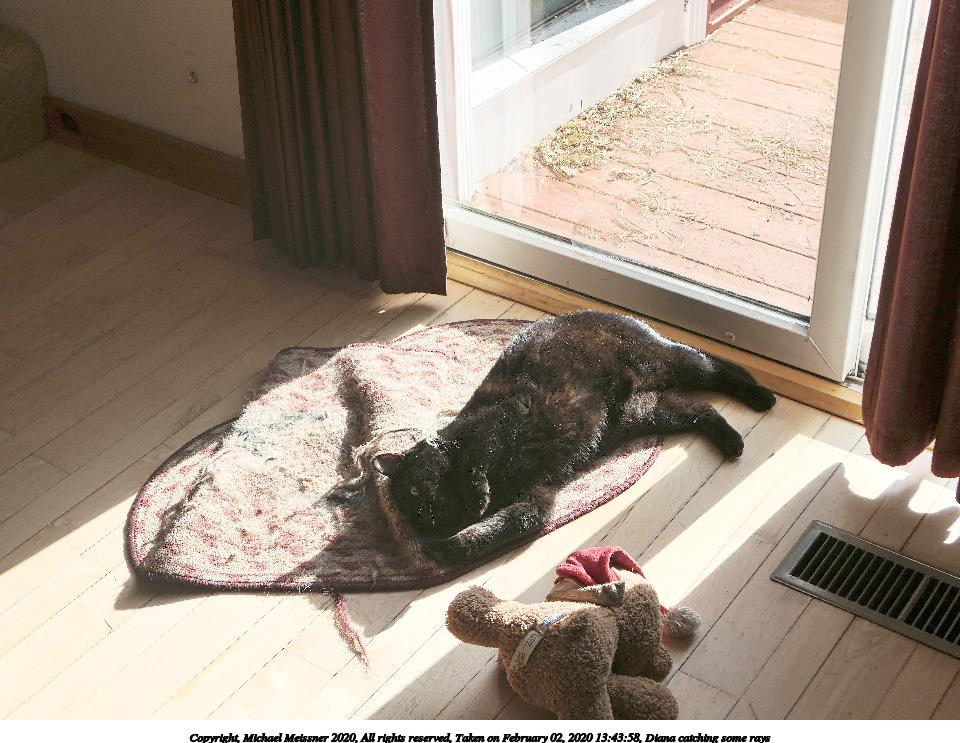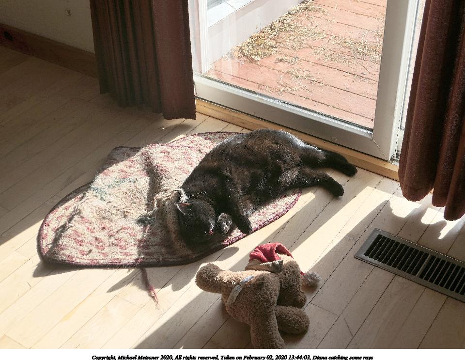 Picture #2: Diana catching some rays #2 Thumb: 480x360, 67,103 bytes (66K) Small: 960x743, 161,789 bytes (158K), (html file) Copyright, Michael Meissner 2020, All rights reserved Panasonic LX-10 camera f/2.8, ISO 125, 1/1000 sec, 18.3mm, auto mode, auto wb (4800), matrix metering, image stabilization 35mm equivalent focal length 54.0mm Programs used: crop, gimp, raw therapee Taken by Michael Meissner on February 02, 2020 13:44:03 Last modified on March 10, 2020 at 11:44 This picture is one of my favorites. |