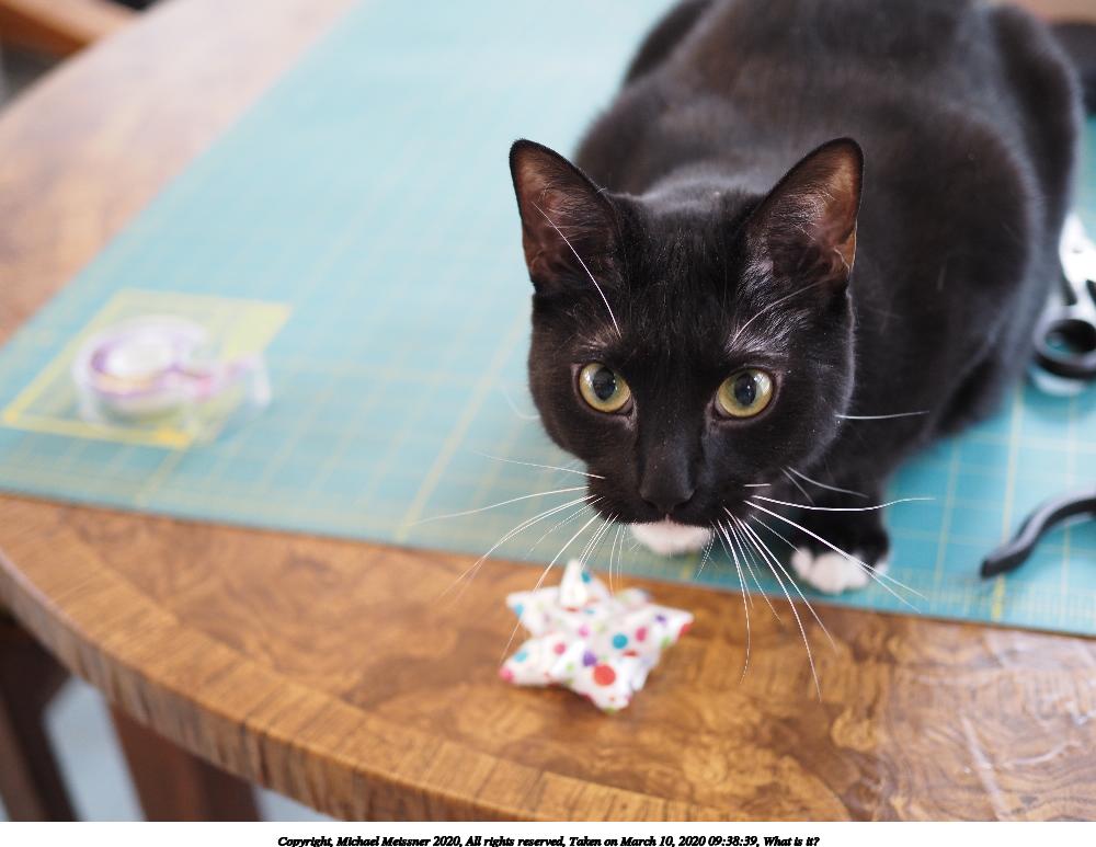 Picture #5: What is it? 1000x773, 72,056 bytes (71K), (html file) Copyright, Michael Meissner 2020, All rights reserved Olympus E-M5-III camera with Olympus-m43 25mm f/1.8 lens f/2.2, ISO 200, 1/100 sec, 25.0mm, auto mode, natural color, matrix metering, IS Auto, noise reduction auto, both eyes priority, face detection 35mm equivalent focal length 50.0mm Programs used: crop, raw therapee Taken by Michael Meissner on March 10, 2020 09:38:22 Last modified on March 10, 2020 at 11:47 This picture is one of my favorites. |