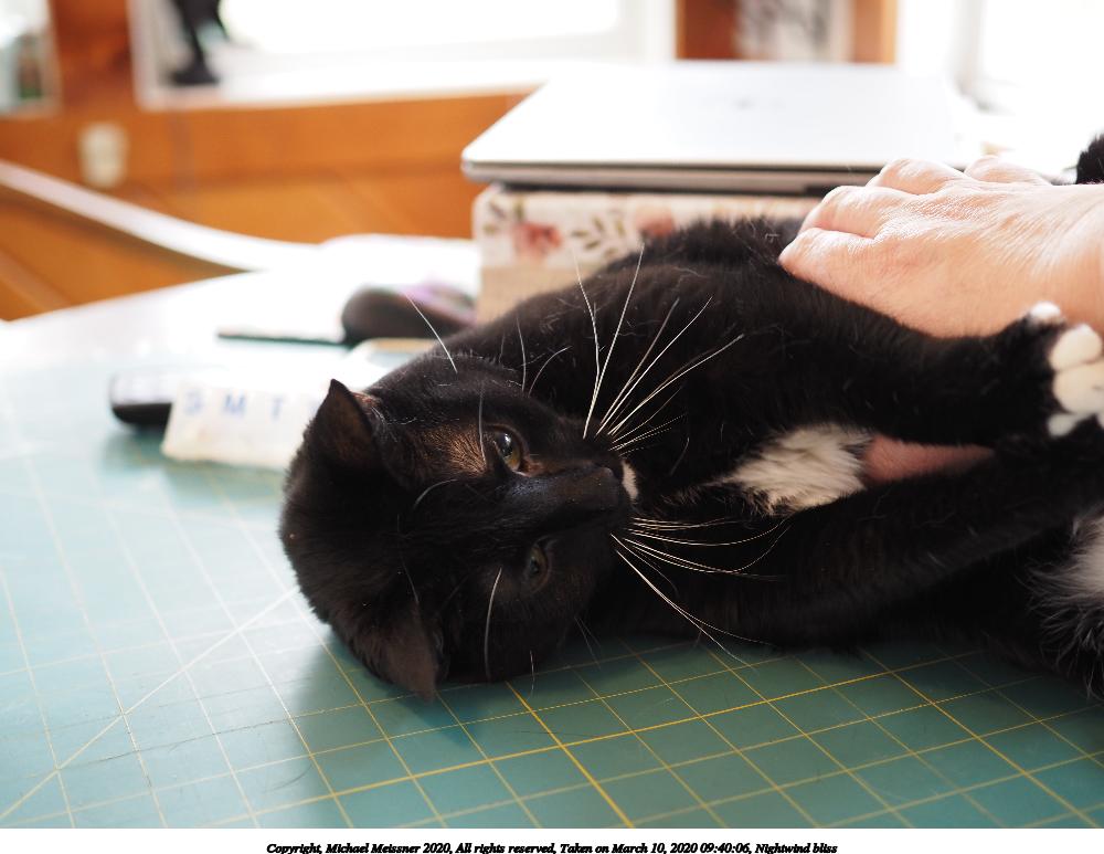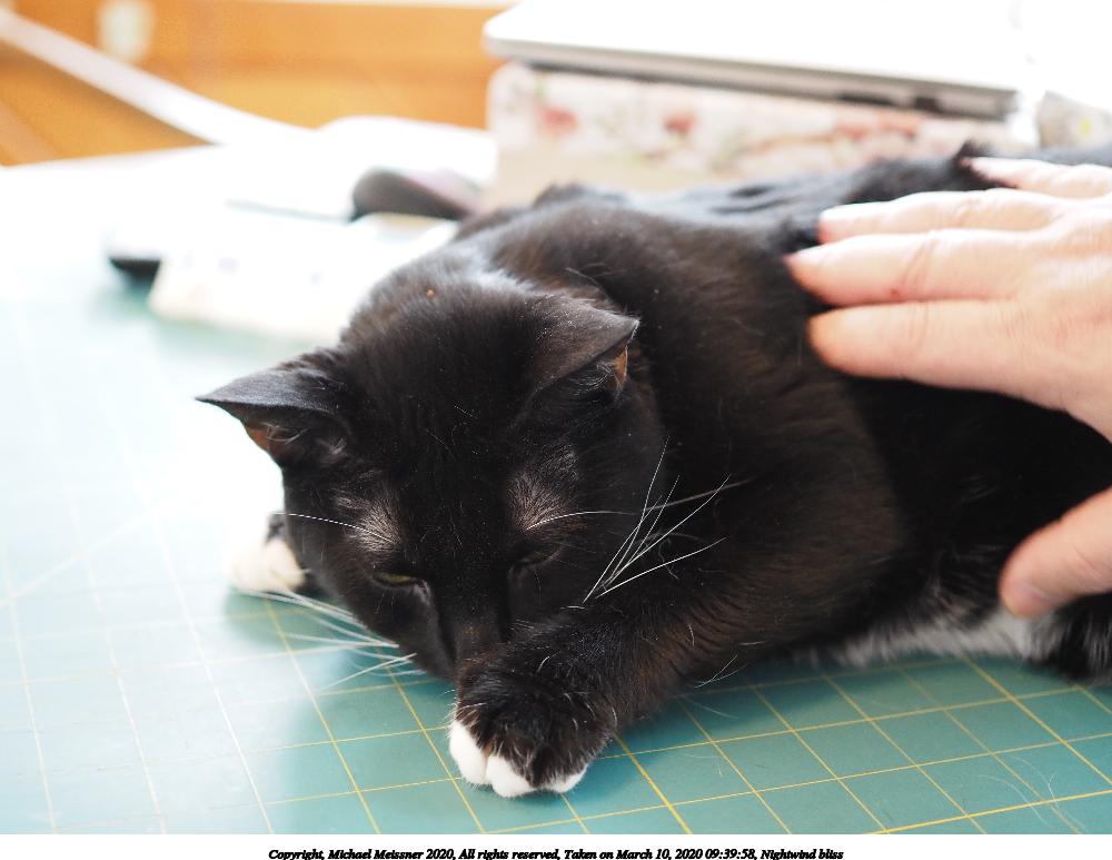 Picture #2: Nightwind bliss 1000x773, 92,378 bytes (91K), (html file) Copyright, Michael Meissner 2020, All rights reserved Olympus E-M5-III camera with Olympus-m43 25mm f/1.8 lens f/2.0, ISO 1000, 1/60 sec, 25.0mm, auto mode, natural color, matrix metering, IS Auto, noise reduction auto, both eyes priority, face detection 35mm equivalent focal length 50.0mm Programs used: crop, raw therapee Taken by Michael Meissner on March 10, 2020 09:39:58 Last modified on March 10, 2020 at 11:48 This picture is one of my favorites. |