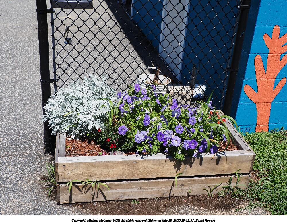 Picture #18: Boxed flowers 1000x773, 294,389 bytes (288K), (html file) Copyright, Michael Meissner 2020, All rights reserved Olympus E-M5-III camera with Olympus-m43 12-200mm f/3.5-6.3 lens f/10.0, ISO 200, 1/320 sec, 20.0mm, auto mode, vivid color, SHQ, matrix metering, IS Auto, noise reduction auto 35mm equivalent focal length 40.0mm Programs used: crop, raw therapee Taken by Michael Meissner on July 18, 2020 13:12:31 Last modified on August 14, 2020 at 00:34 |